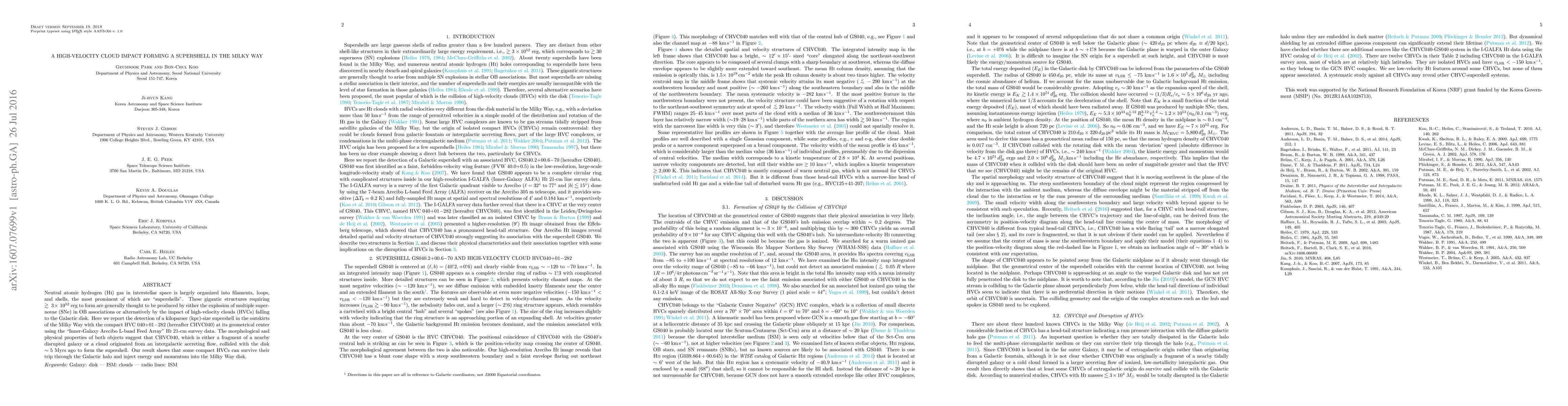 This paper reports the detection of a kiloparsec-sized supershell in the Milky Way's outskirts, formed by the impact of a high-velocity cloud (HVC040) colliding with the Galactic disk about 5 million years ago. This suggests that some compact HVCs can survive their journey through the Galactic halo and significantly influence the Milky Way's disk.