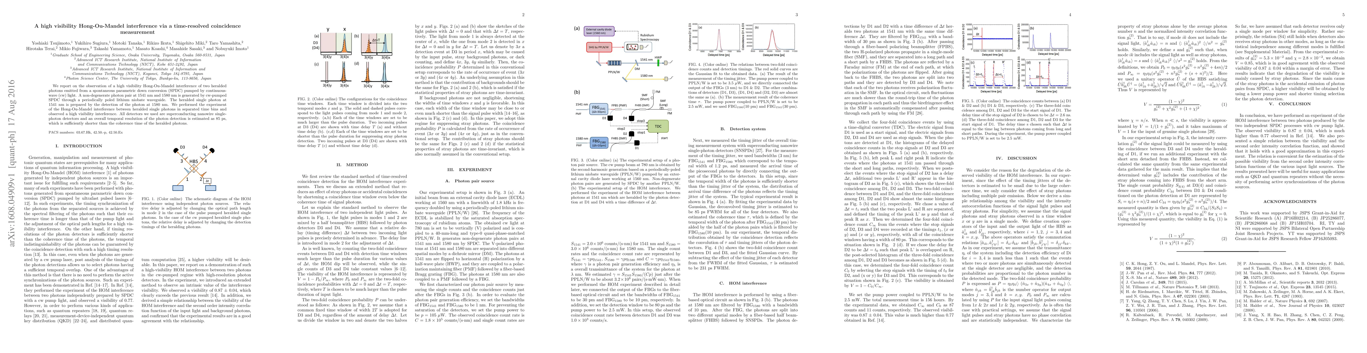This paper reports on the observation of high visibility Hong-Ou-Mandel (HOMI) interference using heralded photons from continuous-wave pumped spontaneous parametric down conversion (SPDC) in a periodically poled lithium niobate waveguide, employing superconducting nanowire single-photon detectors with a temporal resolution of 85 ps.