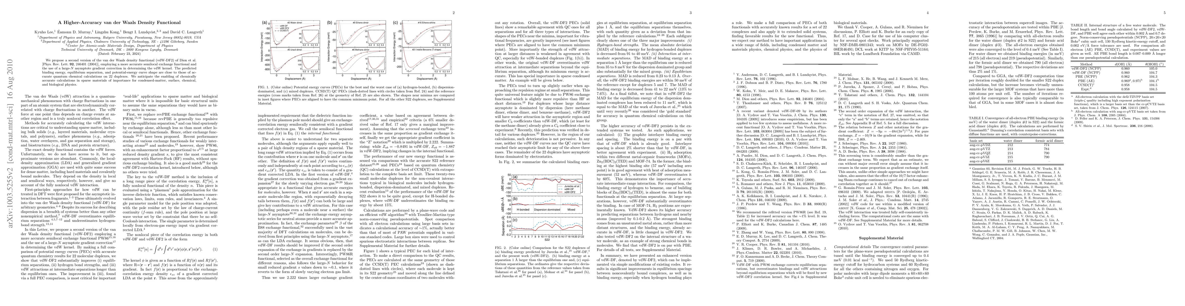 We propose a second version of the van der Waals density functional (vdW-DF2) of Dion et al. [Phys. Rev. Lett. 92, 246401 (2004)], employing a more accurate semilocal exchange functional and the use of a large-N asymptote gradient correction in determining the vdW kernel. The predicted binding energy, equilibrium separation, and potential-energy curve shape are close to those of accurate quantum chemical calculations on 22 duplexes. We anticipate the enabling of chemically accurate calculations in sparse materials of importance for condensed-matter, surface, chemical, and biological physics.