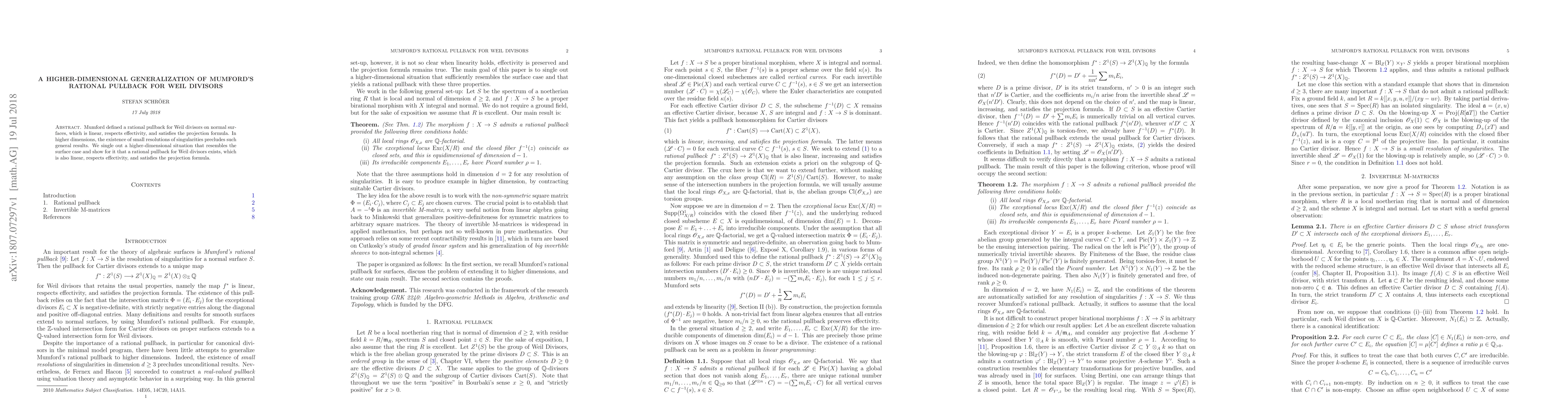 This paper generalizes Mumford's rational pullback for Weil divisors to higher dimensions, demonstrating its existence in a specific higher-dimensional scenario that mirrors the surface case, maintaining linearity, effectivity respect, and the projection formula.