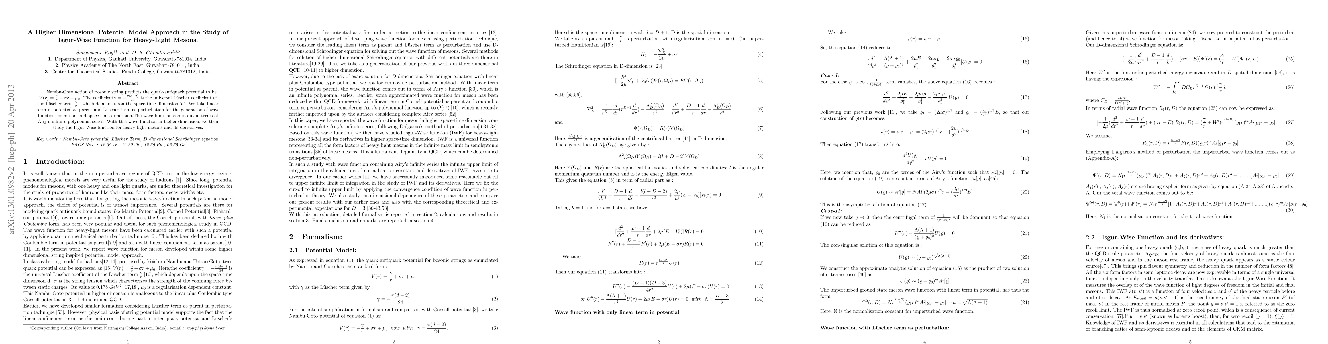 Nambu-Goto action of bosonic string predicts the quark-antiquark potential to be $ V (r) = \frac{\gamma}{r} + \sigma r +\mu_0 $. The coefficient$ \gamma = - \frac{\pi(d-2)}{24} $ is the universal L\"{u}scher coefficient of the L\"uscher term $ \frac{\gamma}{r}$, which depends upon the space-time dimension `d'. We take linear term in potential as parent and L\"uscher term as perturbation for the generation of wave function for meson in d space-time dimension.The wave function comes out in terms of Airy's infinite polynomial series. With this wave function in higher dimension, we then study the Isgur-Wise function for heavy-light mesons and its derivatives.