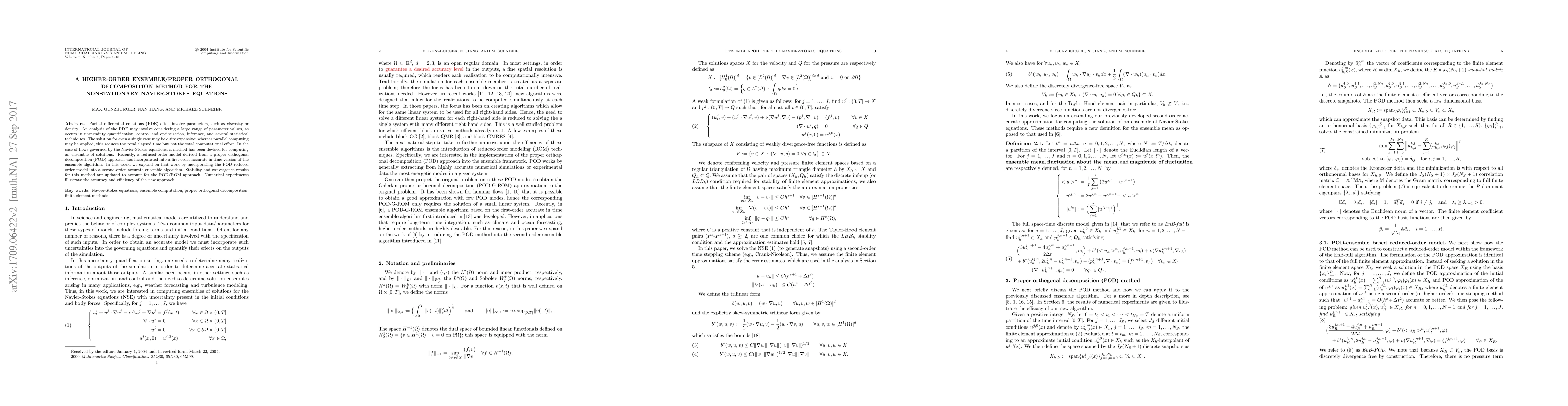 This paper proposes a higher-order ensemble method incorporating proper orthogonal decomposition (POD) for solving nonstationary Navier-Stokes equations. The method enhances computational efficiency by reducing the order of the model while maintaining second-order accuracy, and demonstrates improved stability and convergence.