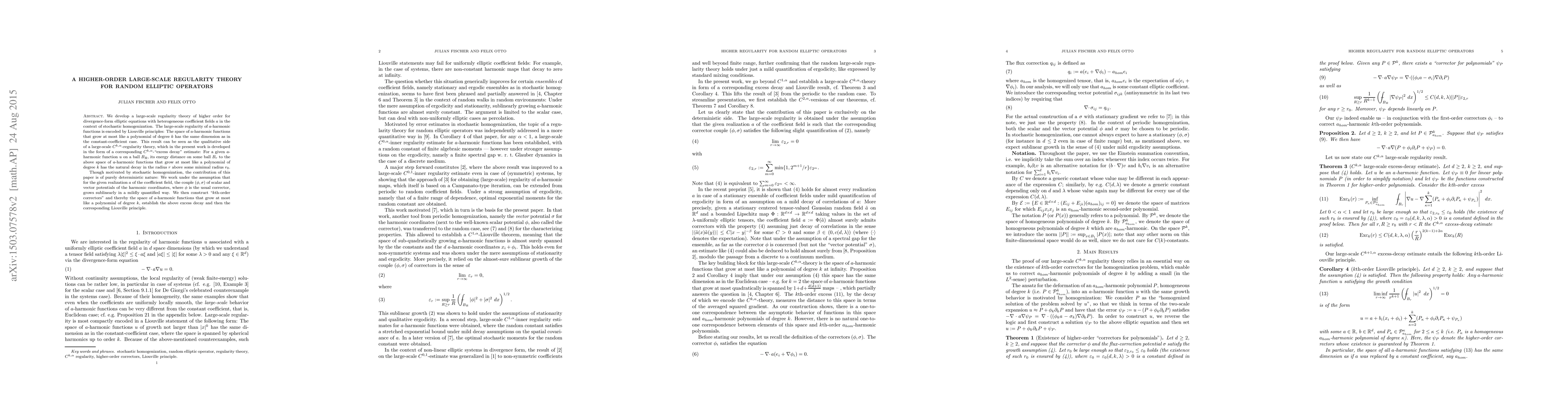 This paper develops a higher-order large-scale regularity theory for random elliptic operators, establishing a $C^{k,\alpha}$-"excess decay" estimate for $a$-harmonic functions. The Liouville principle shows that the dimension of $a$-harmonic functions growing polynomially of degree $k$ remains consistent with the constant-coefficient case.