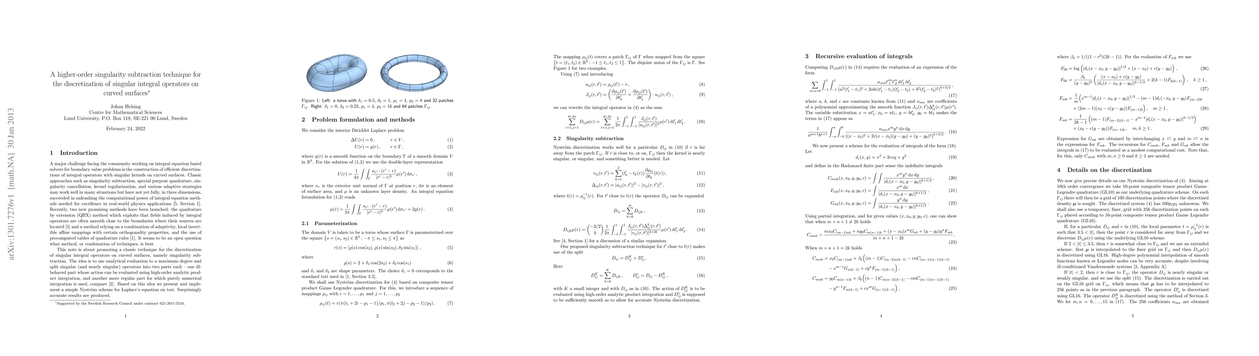 A new technique for discretizing singular integral operators on curved surfaces is presented, reducing computational effort through high-order product integration and series expansion.