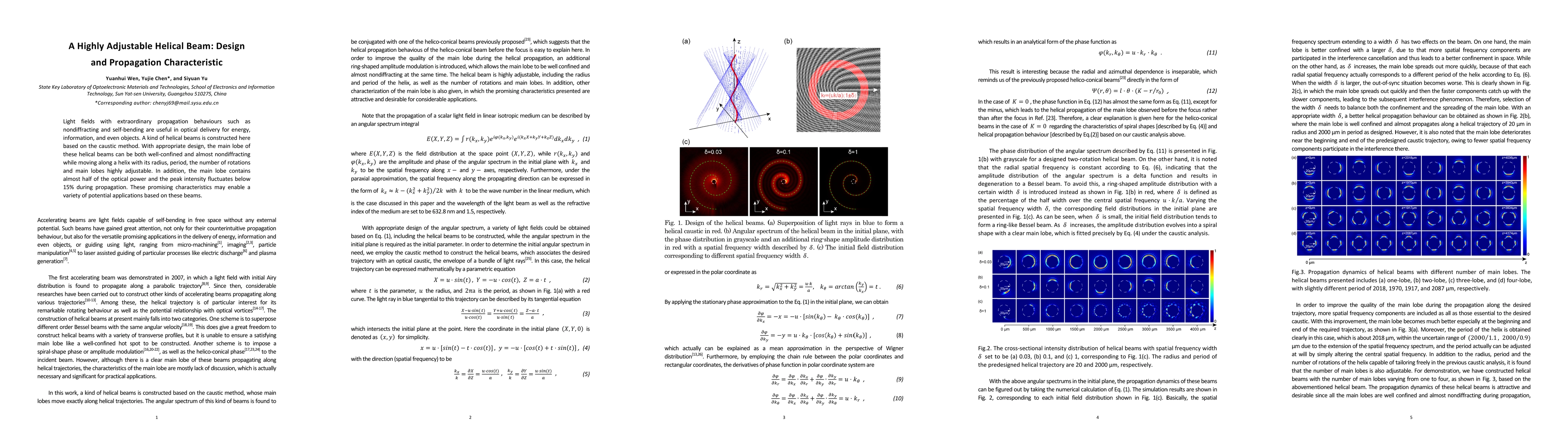Light fields with extraordinary propagation behaviours such as nondiffracting and self-bending are useful in optical delivery for energy, information, and even objects. A kind of helical beams is constructed here based on the caustic method. With appropriate design, the main lobe of these helical beams can be both well-confined and almost nondiffracting while moving along a helix with its radius, period, the number of rotations and main lobes highly adjustable. In addition, the main lobe contains almost half of the optical power and the peak intensity fluctuates below 15% during propagation. These promising characteristics may enable a variety of potential applications based on these beams.