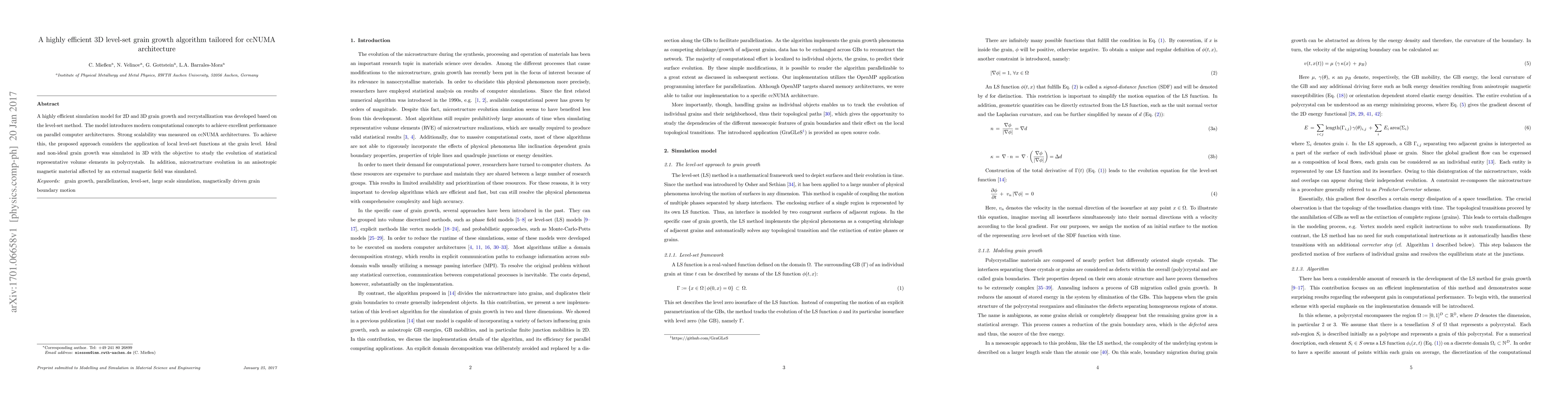 This paper presents an efficient 3D level-set algorithm for simulating grain growth and recrystallization on ccNUMA architectures, leveraging local level-set functions for scalability. The model was tested for both ideal and non-ideal grain growth, and also for microstructure evolution in magnetic materials under an external field.
