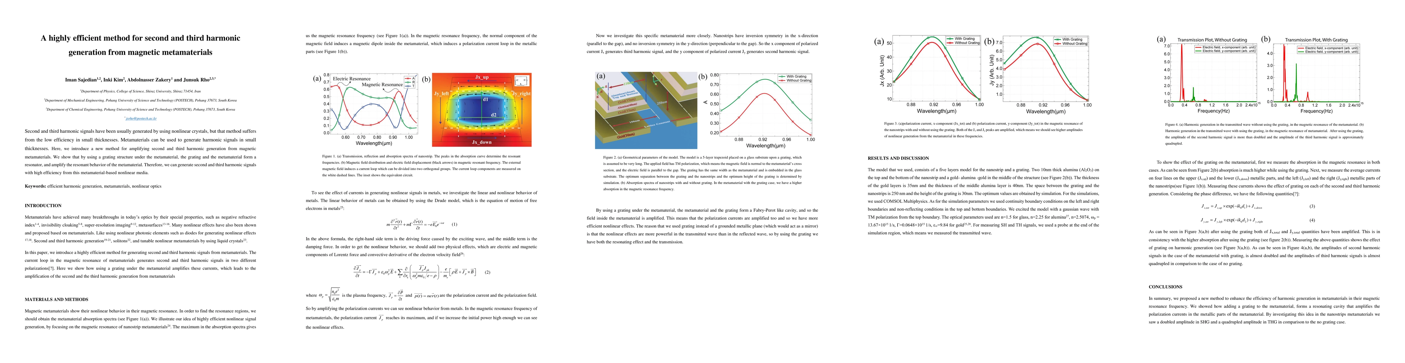 Summary: A new method enhances second and third harmonic generation efficiency in magnetic metamaterials by incorporating a grating structure to form a resonator, significantly improving performance over traditional nonlinear crystals, especially in small thicknesses.