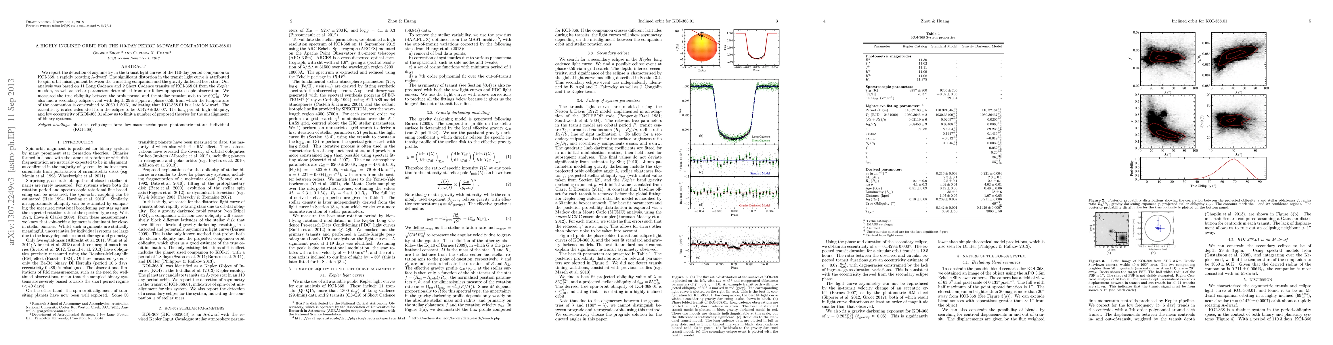This study reports the detection of spin-orbit misalignment in the transit light curve of KOI-368.01, a 110-day period M-dwarf companion, revealing an obliquity of 69 +9/-10 degrees, and a secondary eclipse indicating a companion temperature of 3060 +/- 50 K and eccentricity of 0.1429 +/- 0.0007. The findings constrain theories on binary system misalignments.