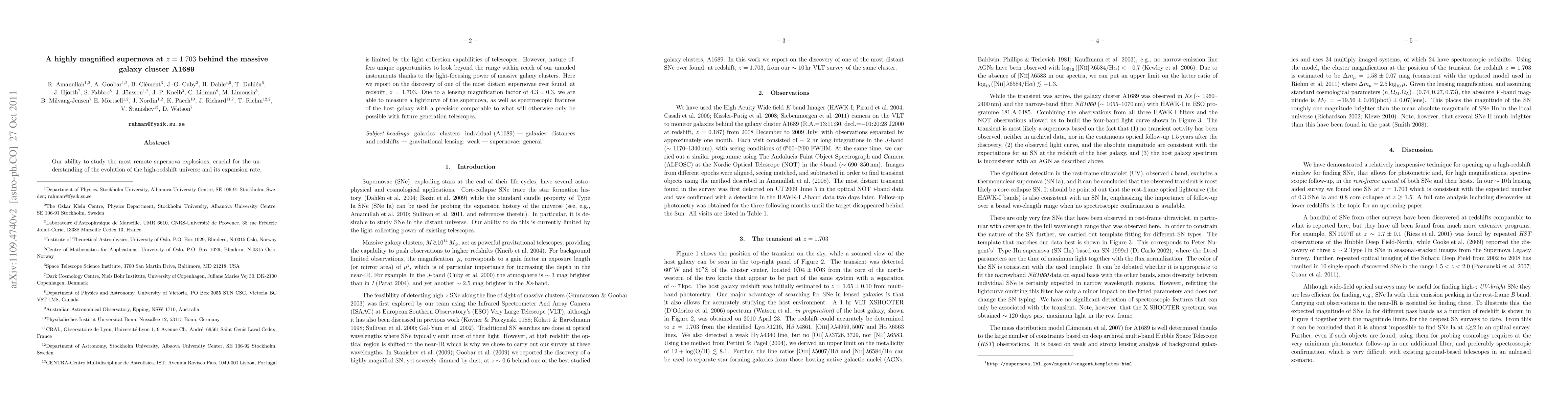 Our ability to study the most remote supernova explosions, crucial for the understanding of the evolution of the high-redshift universe and its expansion rate, is limited by the light collection capabilities of telescopes. However, nature offers unique opportunities to look beyond the range within reach of our unaided instruments thanks to the light-focusing power of massive galaxy clusters. Here we report on the discovery of one of the most distant supernovae ever found, at redshift, z=1.703. Due to a lensing magnification factor of 4.3\pm0.3, we are able to measure a lightcurve of the supernova, as well as spectroscopic features of the host galaxy with a precision comparable to what will otherwise only be possible with future generation telescopes.