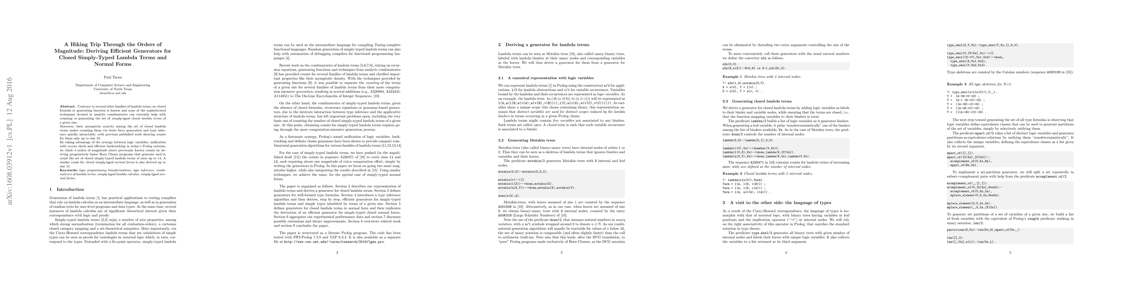 This research develops efficient generators for closed simply-typed lambda terms and normal forms, utilizing Prolog's logical variables and unification to achieve counts up to size 14, surpassing previous methods by four orders of magnitude. It also extends the count for closed simply-typed normal forms up to the same size.