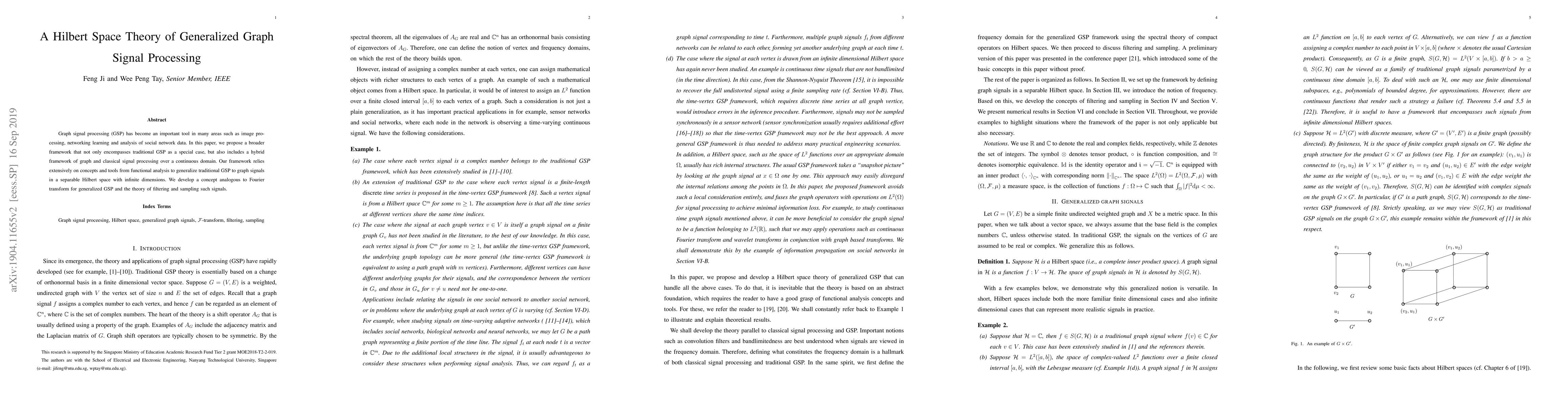 This paper proposes a generalized framework for graph signal processing (GSP) that extends traditional GSP using functional analysis in an infinite-dimensional Hilbert space, incorporating both graph and classical signal processing methods. The authors develop a Fourier transform-like concept and theories for filtering and sampling these generalized graph signals.