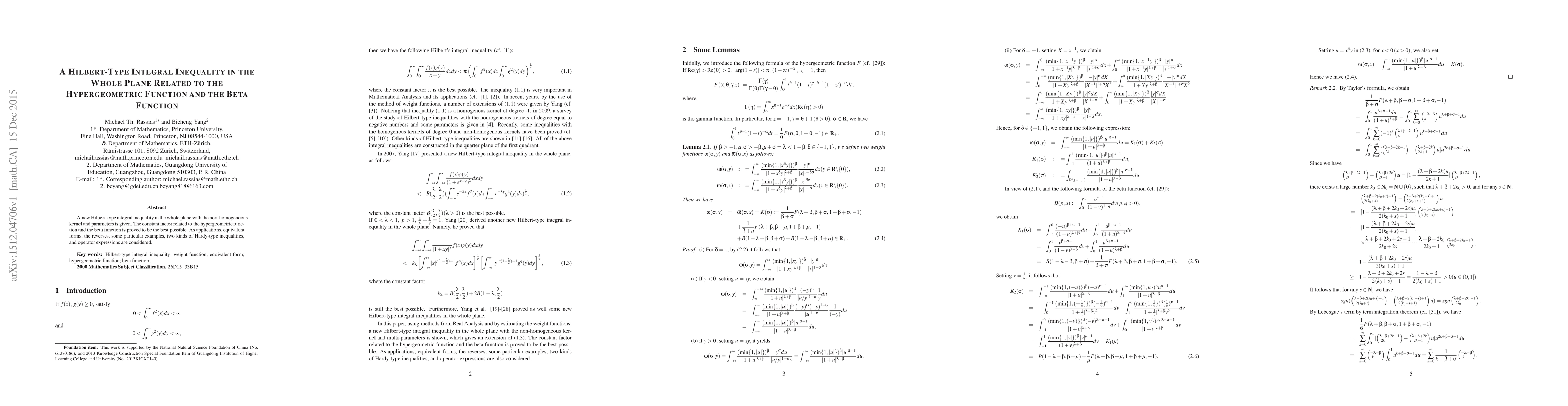 A new Hilbert-type integral inequality is introduced in the whole plane, relating to hypergeometric functions and beta functions, with a constant factor proven to be optimal for its applications.