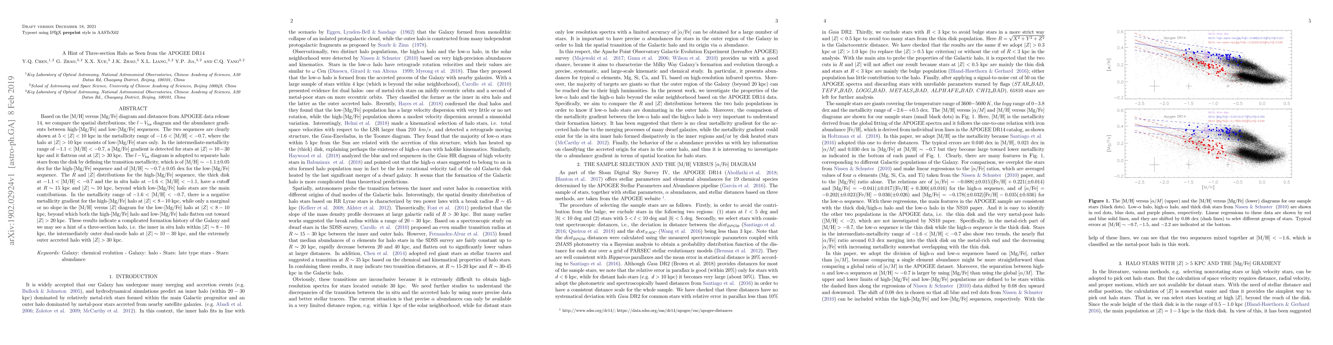 The APOGEE DR14 data reveals a possible three-section halo structure in the Milky Way, with an inner in situ halo, an intermediate outer dual-mode halo, and an extremely outer accreted halo.