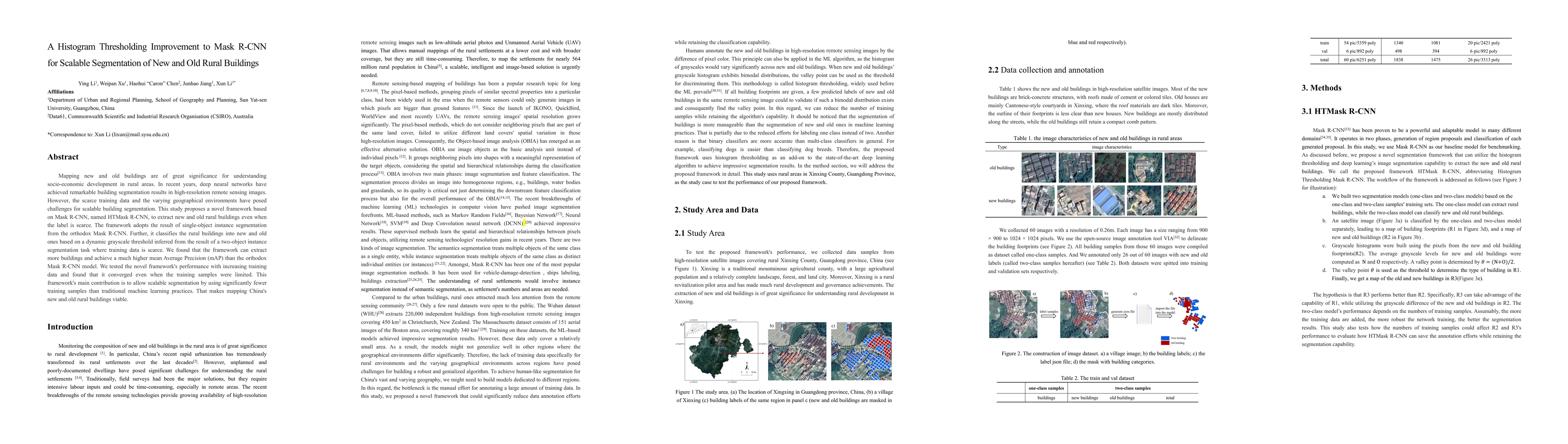 This study introduces HTMask R-CNN, an improved method for accurately identifying new and old rural buildings using limited training data. The approach enhances building detection and classification in remote sensing images, making large-scale mapping of rural areas more feasible and efficient.