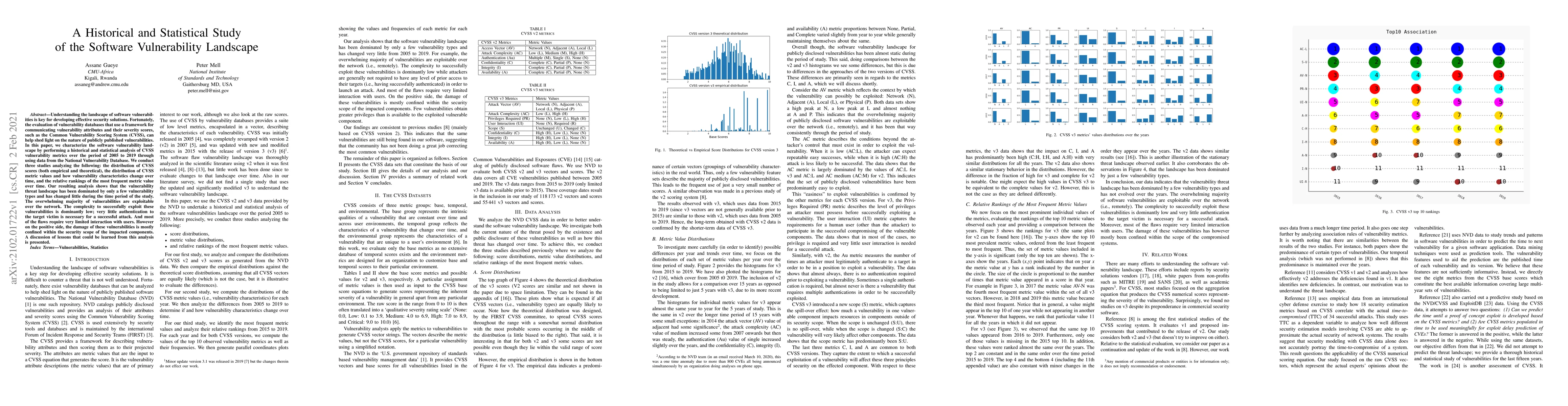 This paper conducts a historical and statistical analysis of software vulnerabilities from 2005 to 2019 using CVSS metrics from the National Vulnerability Database, revealing that a few vulnerability types dominate the threat landscape with low complexity for exploitation, though damage is generally contained within impacted components. Lessons for improving security solutions are discussed.