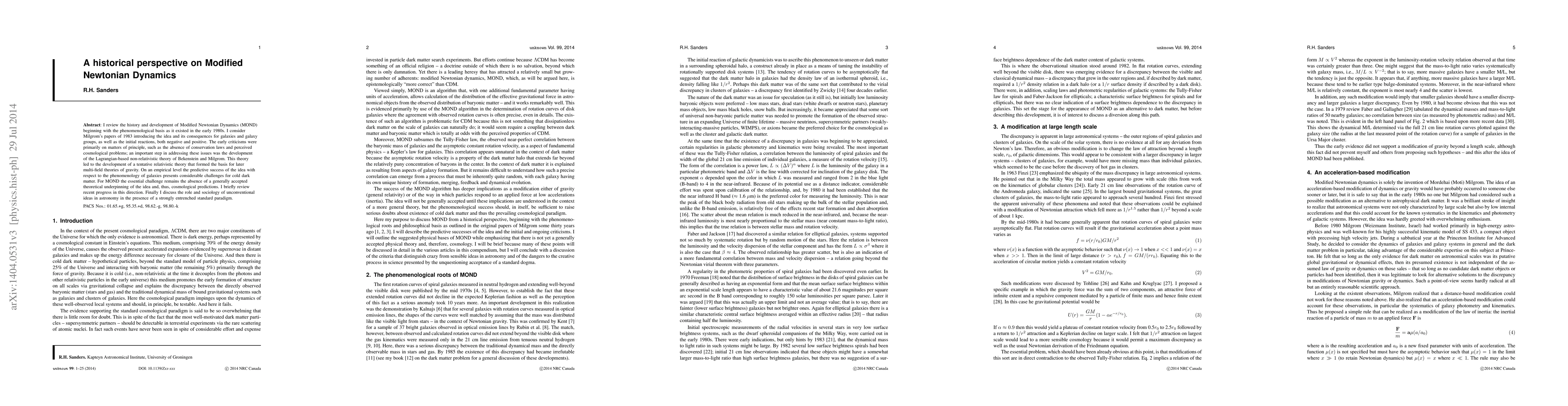 The author discusses the development of MOND from its introduction in 1983 to recent progress in addressing cosmological predictions and the role of unconventional ideas in astronomy.