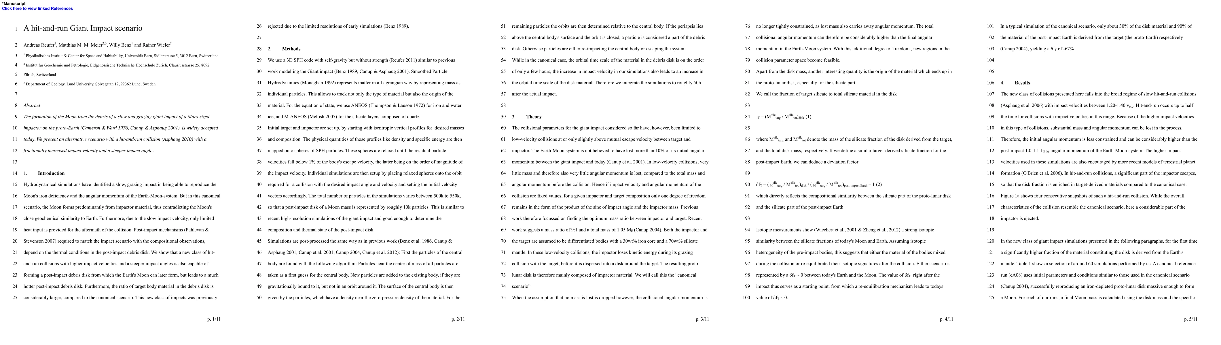 The formation of the Moon from the debris of a slow and grazing giant impact of a Mars-sized impactor on the proto-Earth (Cameron & Ward 1976, Canup & Asphaug 2001) is widely accepted today. We present an alternative scenario with a hit-and-run collision (Asphaug 2010) with a fractionally increased impact velocity and a steeper impact angle.
