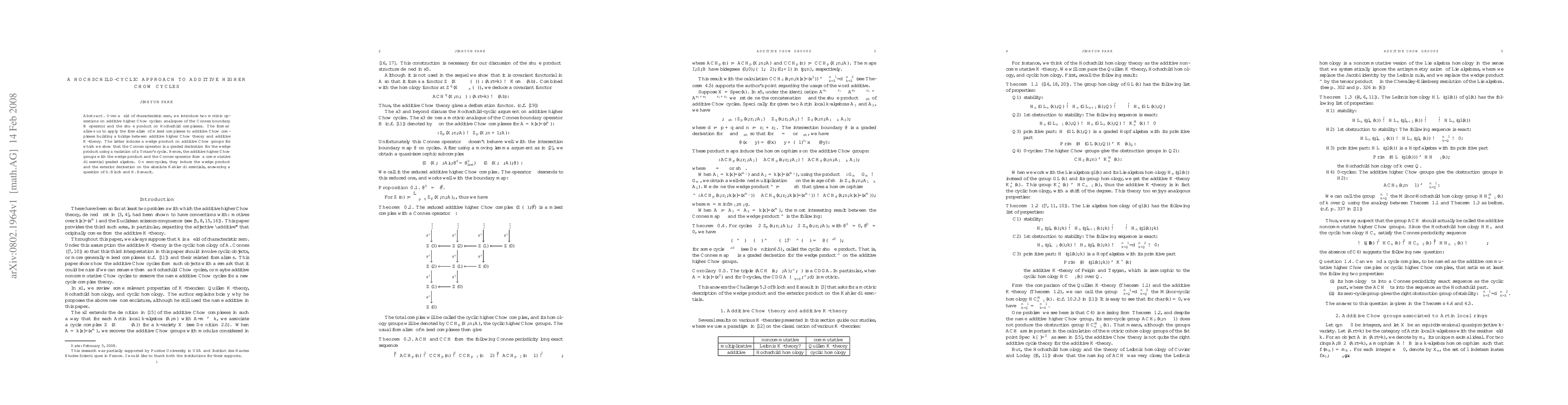 Over a field of characteristic zero, we introduce two motivic operations on additive higher Chow cycles: analogues of the Connes boundary $B$ operator and the shuffle product on Hochschild complexes. The former allows us to apply the formalism of mixed complexes to additive Chow complexes building a bridge between additive higher Chow theory and additive $K$-theory. The latter induces a wedge product on additive Chow groups for which we show that the Connes operator is a graded derivation for the wedge product using a variation of a Totaro's cycle. Hence, the additive higher Chow groups with the wedge product and the Connes operator form a commutative differential graded algebra. On zero-cycles, they induce the wedge product and the exterior derivation on the absolute K\"ahler differentials, answering a question of S. Bloch and H. Esnault.