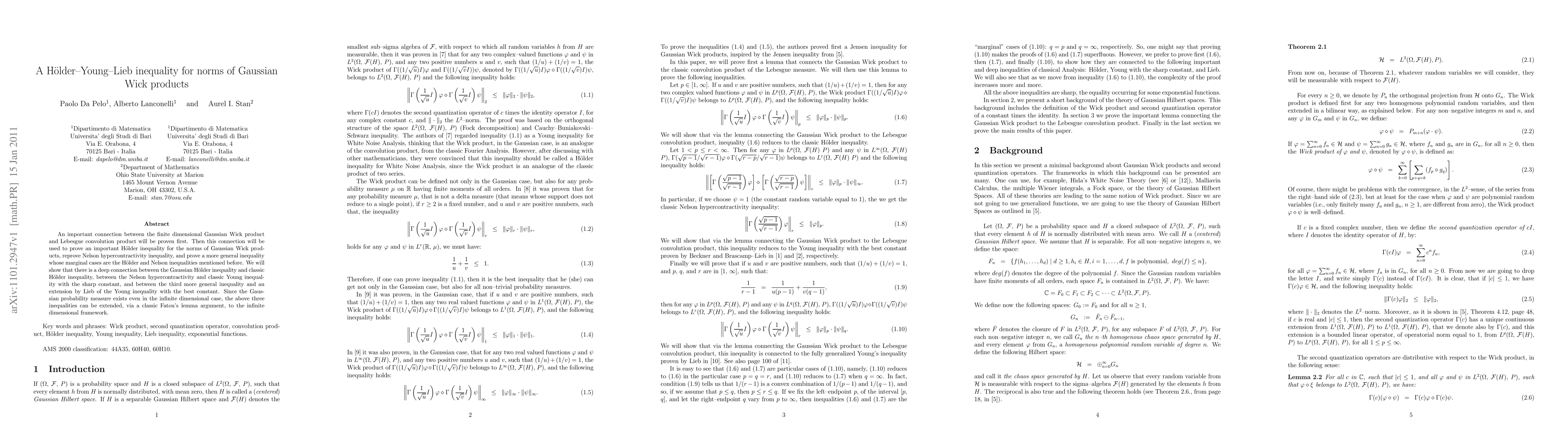An important connection between the finite dimensional Gaussian Wick product and Lebesgue convolution product will be proven first. Then this connection will be used to prove an important H\"older inequality for the norms of Gaussian Wick products, reprove Nelson hypercontractivity inequality, and prove a more general inequality whose marginal cases are the H\"older and Nelson inequalities mentioned before. We will show that there is a deep connection between the Gaussian H\"older inequality and classic H\"older inequality, between the Nelson hypercontractivity and classic Young inequality with the sharp constant, and between the third more general inequality and an extension by Lieb of the Young inequality with the best constant. Since the Gaussian probability measure exists even in the infinite dimensional case, the above three inequalities can be extended, via a classic Fatou's lemma argument, to the infinite dimensional framework.