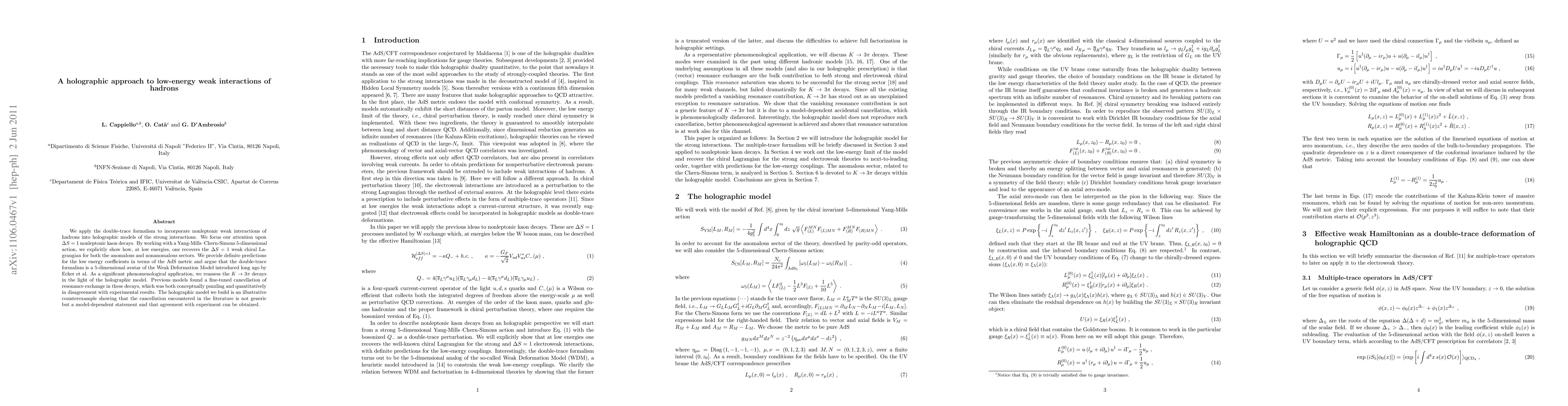Researchers develop a holographic approach to understand low-energy weak interactions of hadrons, predicting new insights into $K o 3 heta$ decays that improve upon previous models.