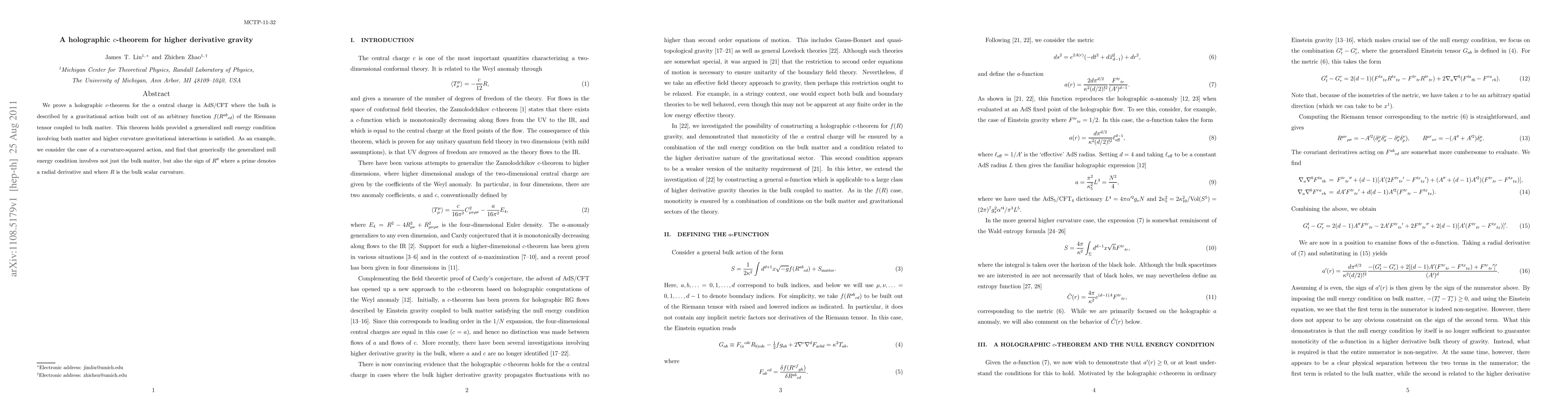 The paper introduces a generalized null energy condition that ensures monotonicity of the a-function in higher derivative gravity theories, thus proving a holographic c-theorem.