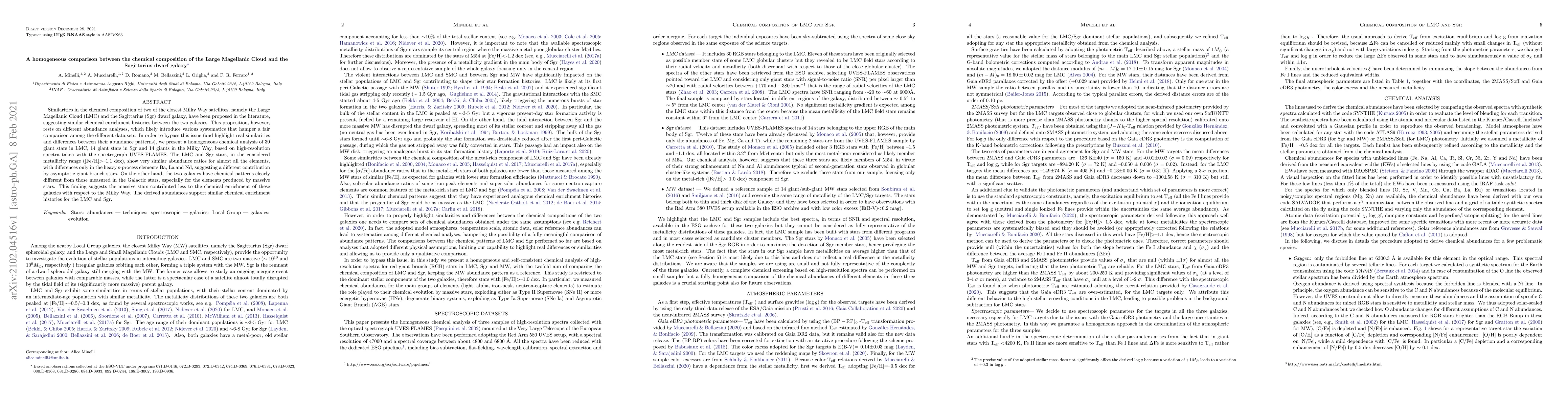 Similarities in the chemical composition of two of the closest Milky Way satellites, namely the Large Magellanic Cloud (LMC) and the Sagittarius (Sgr) dwarf galaxy, have been proposed in the literature, suggesting similar chemical enrichment histories between the two galaxies. This proposition, however, rests on different abundance analyses, which likely introduce various systematics that hamper a fair comparison among the different data sets. In order to bypass this issue (and highlight real similarities and differences between their abundance patterns), we present a homogeneous chemical analysis of 30 giant stars in LMC, 14 giant stars in Sgr and 14 giants in the Milky Way, based on high-resolution spectra taken with the spectrograph UVES-FLAMES. The LMC and Sgr stars, in the considered metallicity range ([Fe/H]>-1.1 dex), show very similar abundance ratios for almost all the elements, with differences only in the heavy s-process elements Ba, La and Nd, suggesting a different contribution by asymptotic giant branch stars. On the other hand, the two galaxies have chemical patterns clearly different from those measured in the Galactic stars, especially for the elements produced by massive stars. This finding suggests the massive stars contributed less to the chemical enrichment of these galaxies with respect to the Milky Way. The derived abundances support similar chemical enrichment histories for the LMC and Sgr.