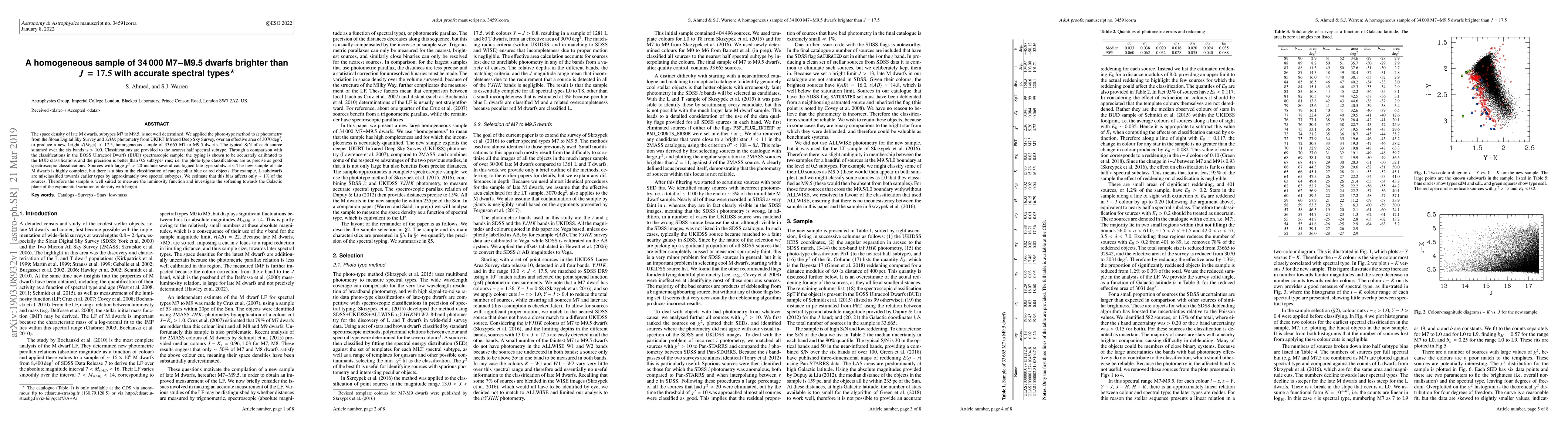 The space density of late M dwarfs, subtypes M7-M9.5, is not well determined. We applied the photo-type method to $iz$ photometry from the Sloan Digital Sky Survey and $YJHK$ photometry from the UKIRT Infrared Deep Sky Survey, over an effective area of 3070 $deg^{2}$, to produce a new, bright $J$(Vega) < 17.5, homogeneous sample of 33 665 M7-M9.5 dwarfs. The typical S/N of each source summed over the six bands is > 100. Classifications are provided to the nearest half spectral subtype. Through a comparison with the classifications in the BOSS Ultracool Dwarfs (BUD) spectroscopic sample, the typing is shown to be accurately calibrated to the BUD classifications and the precision is better than 0.5 subtypes rms; i.e. the photo-type classifcations are as precise as good spectroscopic classifications. Sources with large $\chi^2$ > 20 include several catalogued late-type subdwarfs. The new sample of late M dwarfs is highly complete, but there is a bias in the classification of rare peculiar blue or red objects. For example, L subdwarfs are misclassified towards earlier types by approximately two spectral subtypes. We estimate that this bias only affects ~1% of the course. Therefore the sample is well suited to measure the luminsoity function and investigate the softening towards the Galactic plane of the exponential variation of density with height.