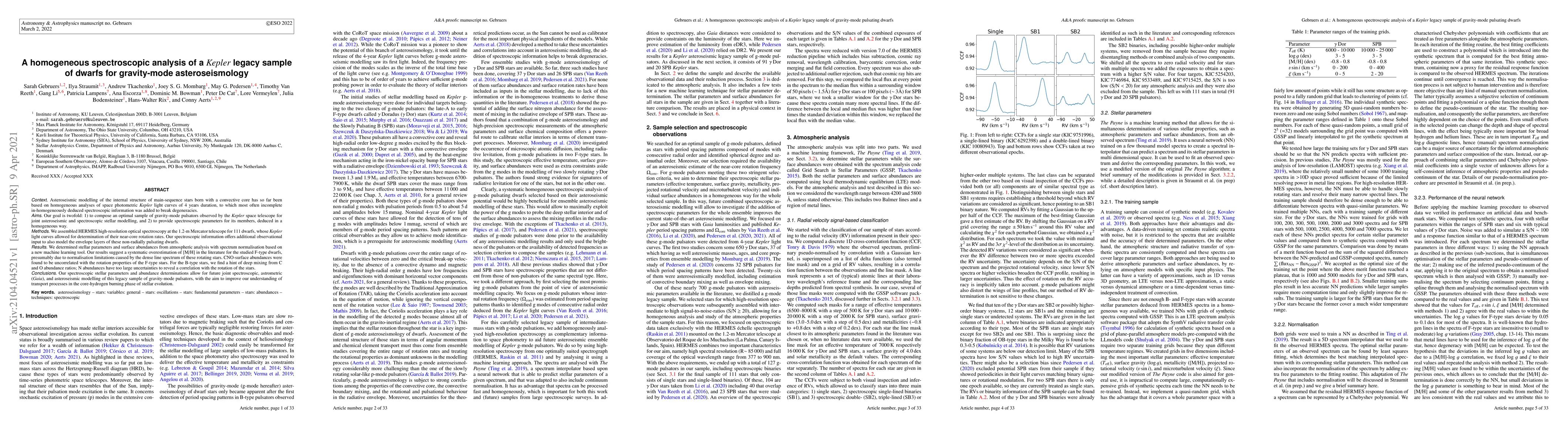 This study presents a homogeneous spectroscopic analysis of 111 F-type dwarf gravity-mode pulsators observed by Kepler, using HERMES high-resolution optical spectroscopy. The analysis reveals a systematic overestimation of [M/H] in previous literature and suggests future joint spectroscopic, astrometric, and asteroseismic modelling to better understand transport processes in stellar evolution.