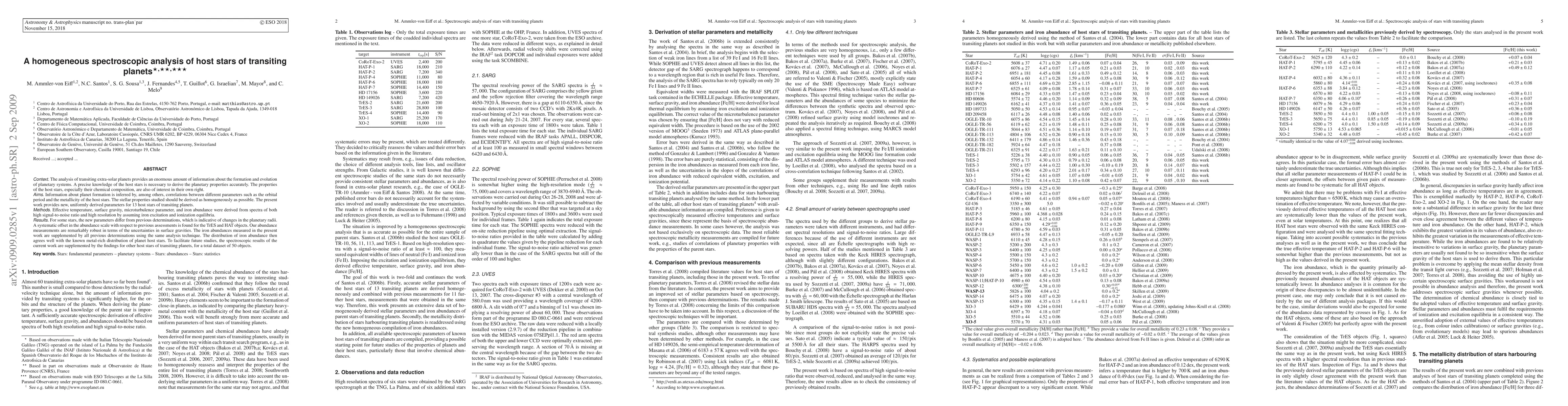 This paper presents a homogeneous spectroscopic analysis of 13 host stars of transiting planets, deriving new parameters for effective temperature, surface gravity, microturbulence, and iron abundance. The study finds systematic differences from previous determinations, indicating potential changes in planetary radii and a consistent offset in the abundance scale for certain objects.
