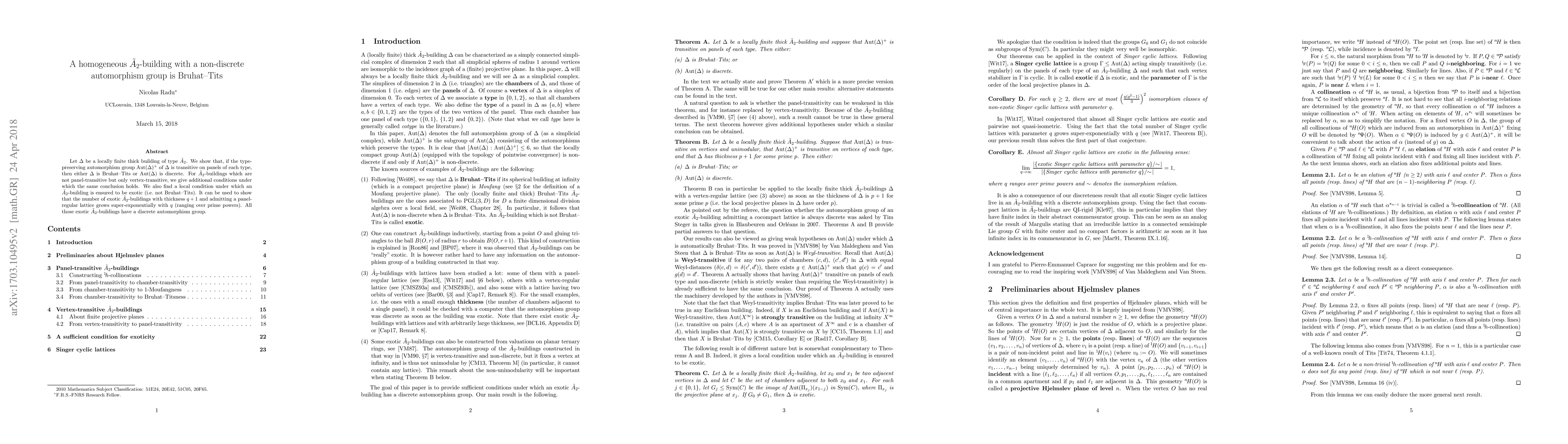 Let $\Delta$ be a locally finite thick building of type $\tilde{A}_2$. We show that, if the type-preserving automorphism group $\mathrm{Aut}(\Delta)^+$ of $\Delta$ is transitive on panels of each type, then either $\Delta$ is Bruhat--Tits or $\mathrm{Aut}(\Delta)$ is discrete. For $\tilde{A}_2$-buildings which are not panel-transitive but only vertex-transitive, we give additional conditions under which the same conclusion holds. We also find a local condition under which an $\tilde{A}_2$-building is ensured to be exotic (i.e.\ not Bruhat--Tits). It can be used to show that the number of exotic $\tilde{A}_2$-buildings with thickness $q+1$ and admitting a panel-regular lattice grows super-exponentially with $q$ (ranging over prime powers). All those exotic $\tilde{A}_2$-buildings have a discrete automorphism group.