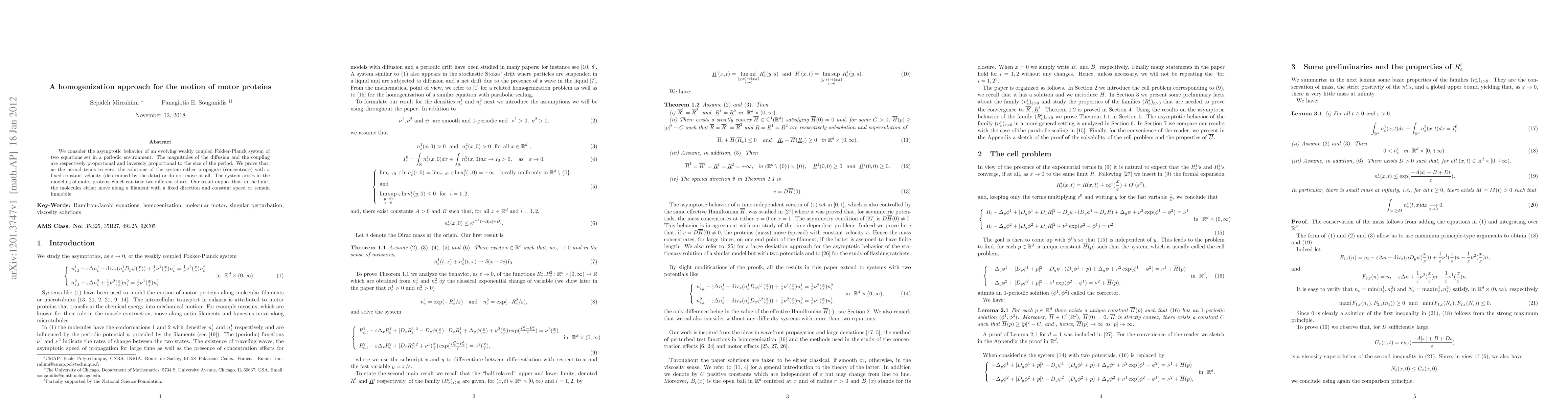 We consider the asymptotic behavior of an evolving weakly coupled Fokker-Planck system of two equations set in a periodic environment. The magnitudes of the diffusion and the coupling are respectively proportional and inversely proportional to the size of the period. We prove that, as the period tends to zero, the solutions of the system either propagate (concentrate) with a fixed constant velocity (determined by the data) or do not move at all. The system arises in the modeling of motor proteins which can take two different states. Our result implies that, in the limit, the molecules either move along a filament with a fixed direction and constant speed or remain immobile.