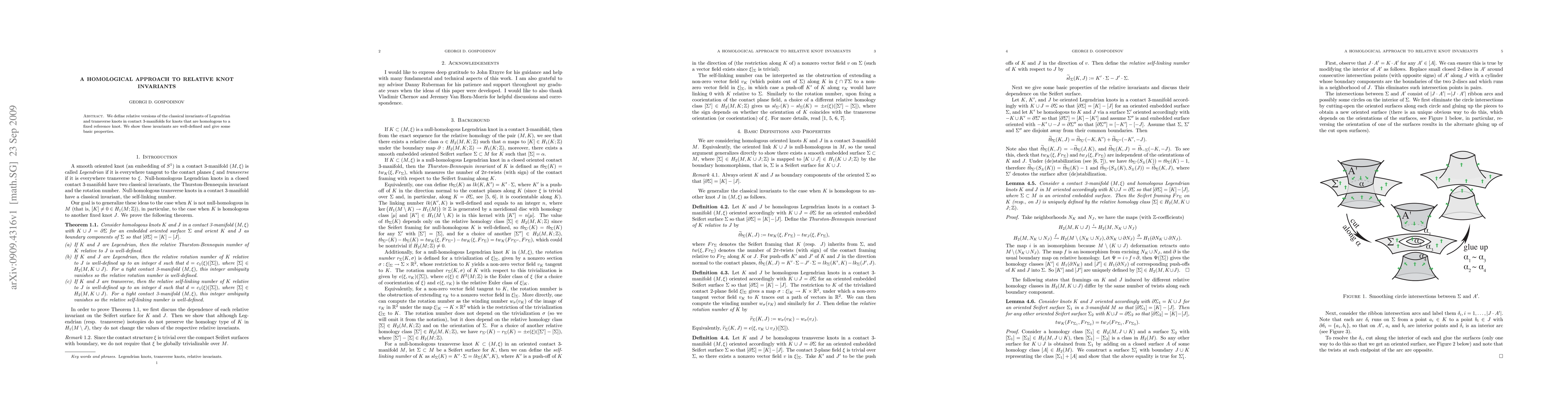 We define relative versions of the classical invariants of Legendrian and transverse knots in contact 3-manifolds for knots that are homologous to a fixed reference knot. We show these invariants are well-defined and give some basic properties.