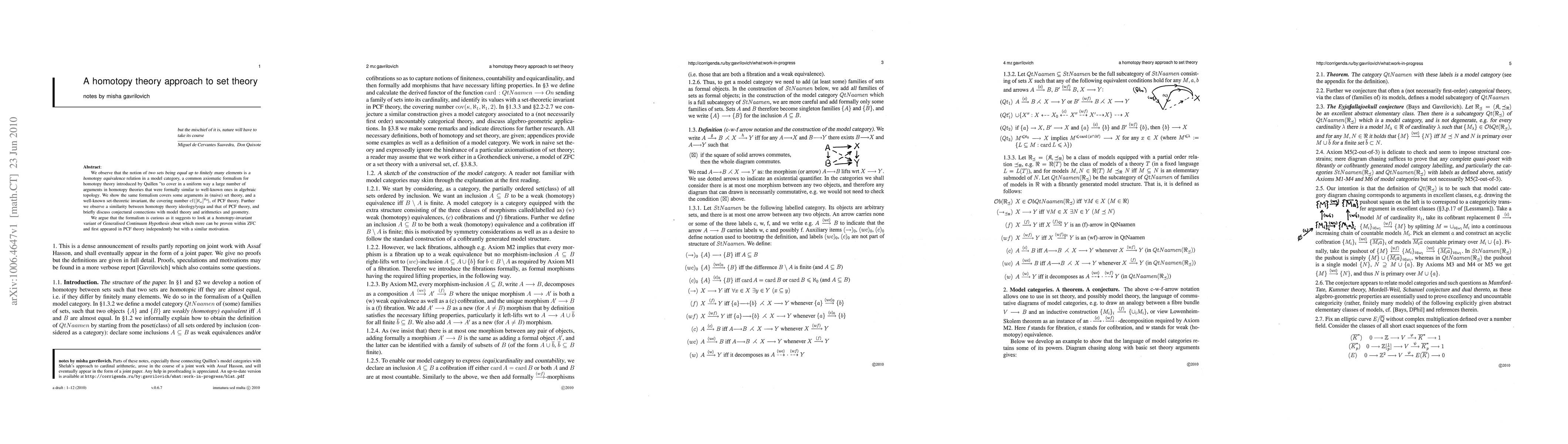 We observe that the notion of two sets being equal up to finitely many elements is a homotopy equivalence relation in a model category, and suggest a homotopy-invariant variant of Generalised Continuum Hypothesis about which more can be proven within ZFC and which first appeared in PCF theory. The formalism allows to draw analogies between notions of set theory and those of homotopy theory, and we indeed observe a similarity between homotopy theory ideology/yoga and that of PCF theory. We also briefly discuss conjectural connections with model theory and arithmetics and geometry.
