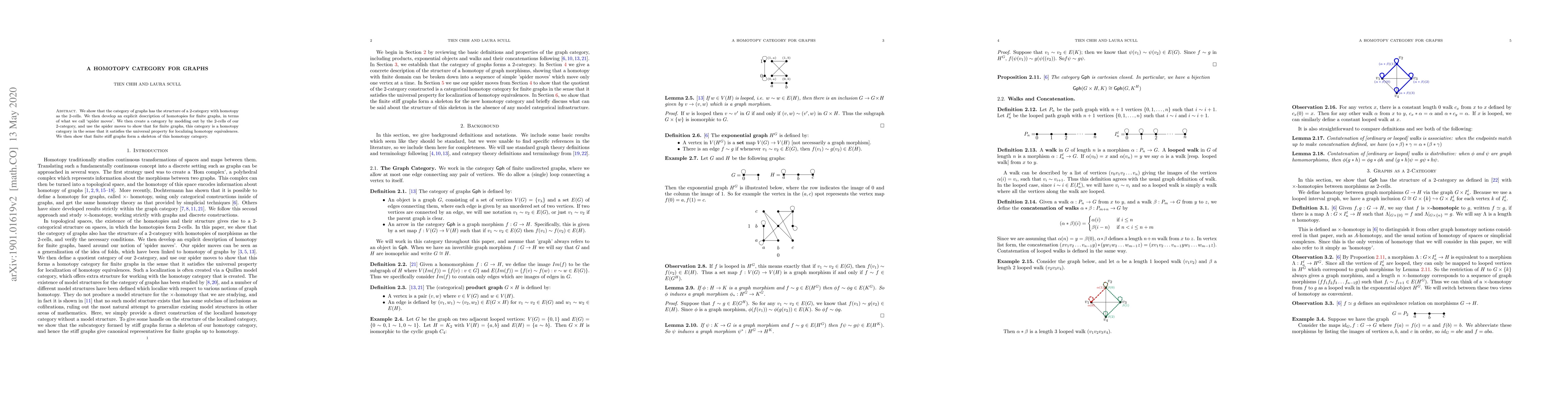 This paper constructs a 2-category for graphs where homotopies are represented by "spider moves," then demonstrates that the resulting homotopy category satisfies the universal property for homotopy equivalences and identifies finite stiff graphs as a skeleton of this category.