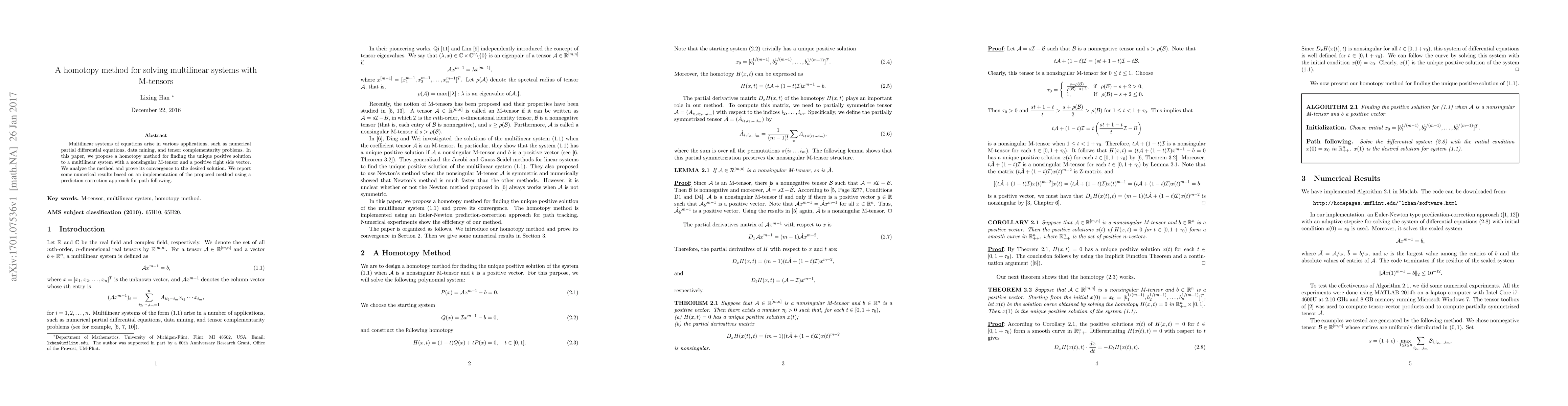 This paper proposes a homotopy method to solve multilinear systems with nonsingular M-tensors, ensuring a unique positive solution. The method's convergence is proven, and numerical results are reported using a prediction-correction approach for path following.
