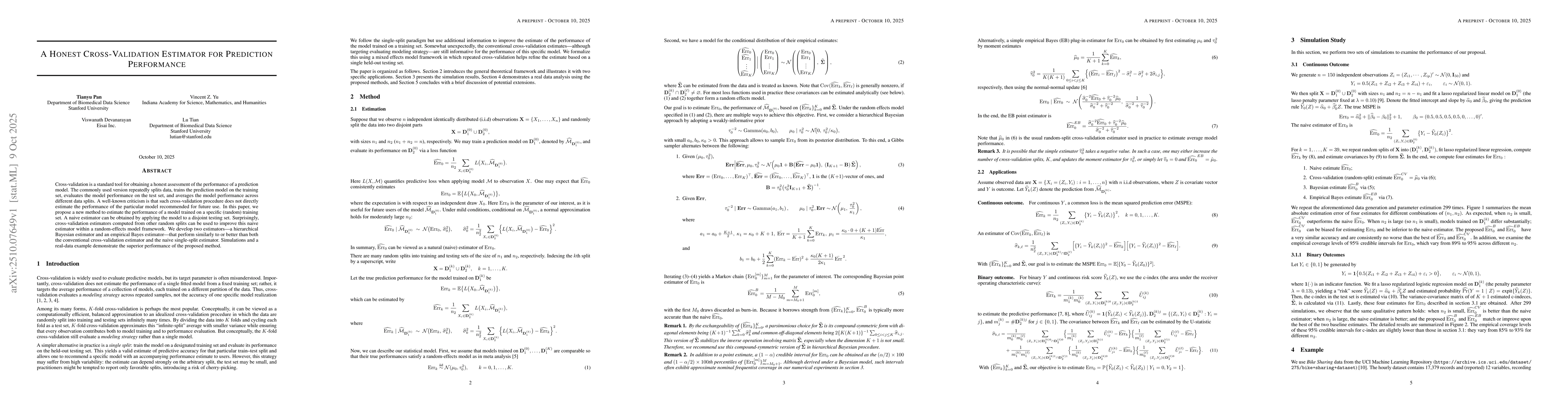 This research addresses the limitation of traditional cross-validation by providing more reliable performance estimates for prediction models, which is critical for model selection and evaluation in practical applications.