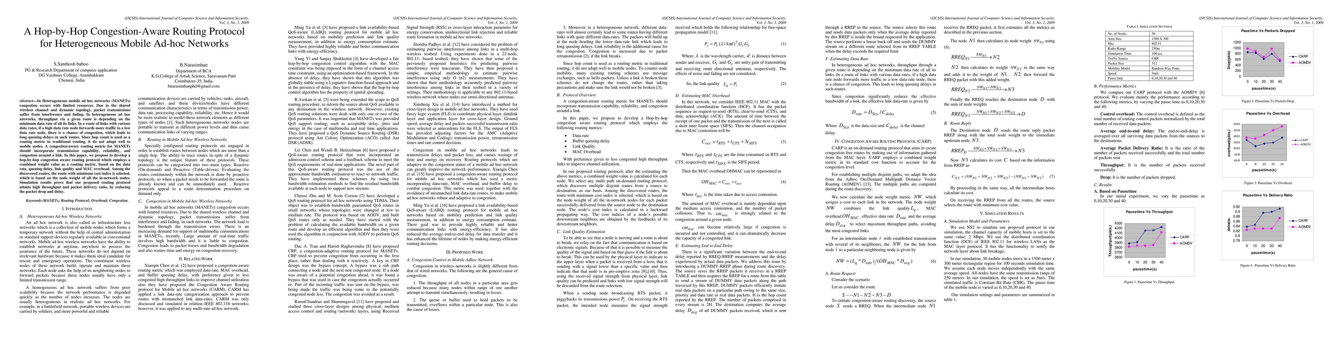 This paper proposes a hop-by-hop congestion-aware routing protocol for heterogeneous mobile ad hoc networks, using a combined weight metric based on data rate, queuing delay, link quality, and MAC overhead to optimize routing. Simulation results show improved throughput and delivery ratio by minimizing packet drop and delay.