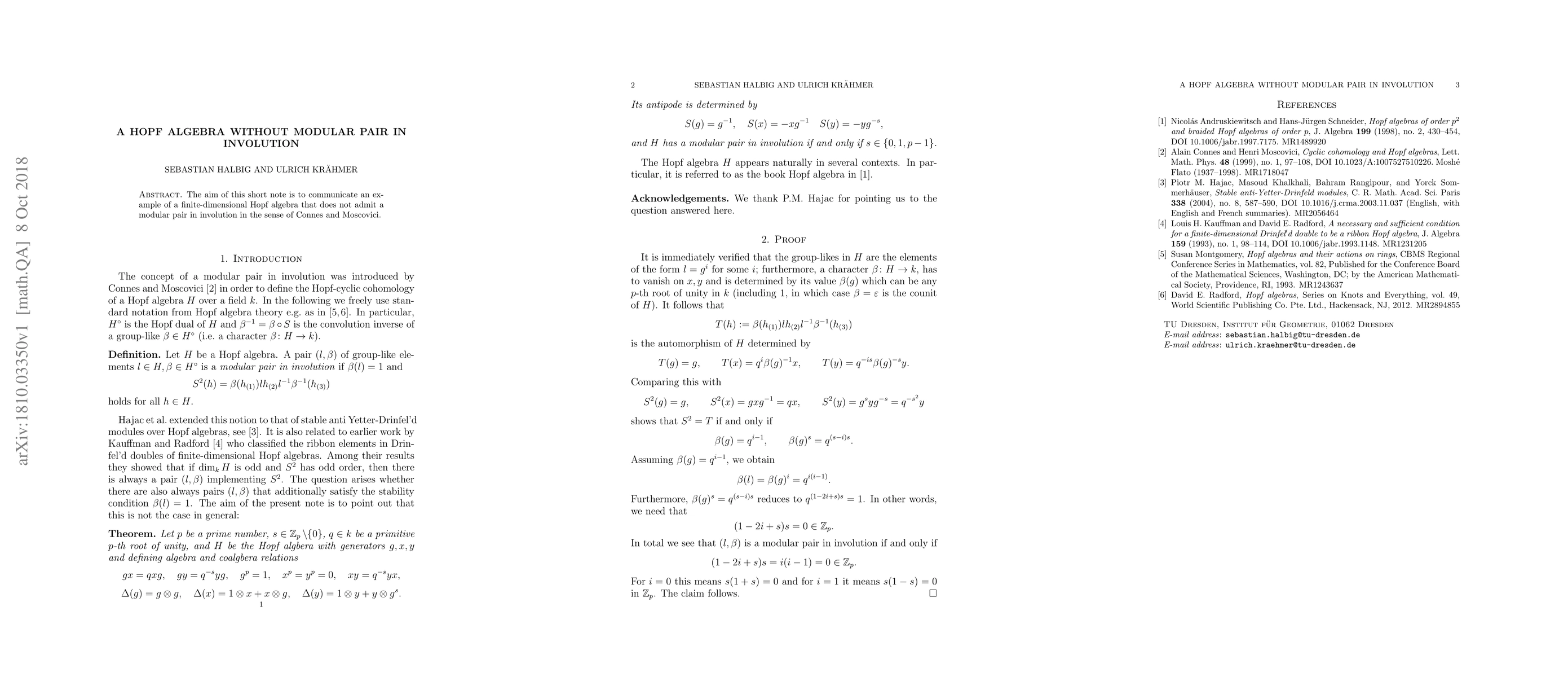The aim of this short note is to communicate an example of a finite-dimensional Hopf algebra that does not admit a modular pair in involution in the sense of Connes and Moscovici.