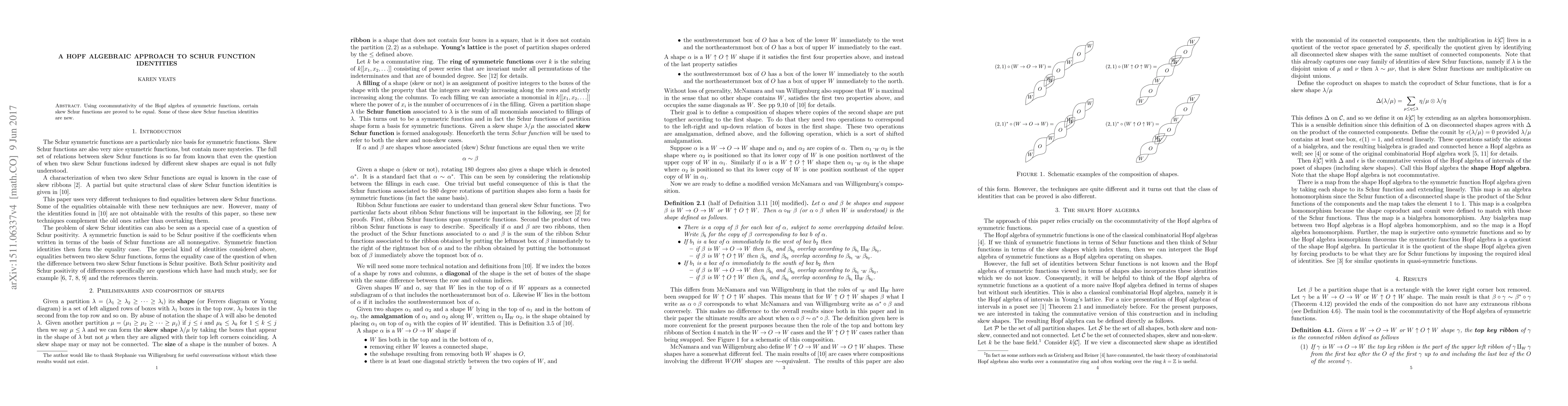 This paper employs the cocommutativity of the Hopf algebra of symmetric functions to establish novel identities for skew Schur functions, proving that certain previously unknown equalities hold among them.