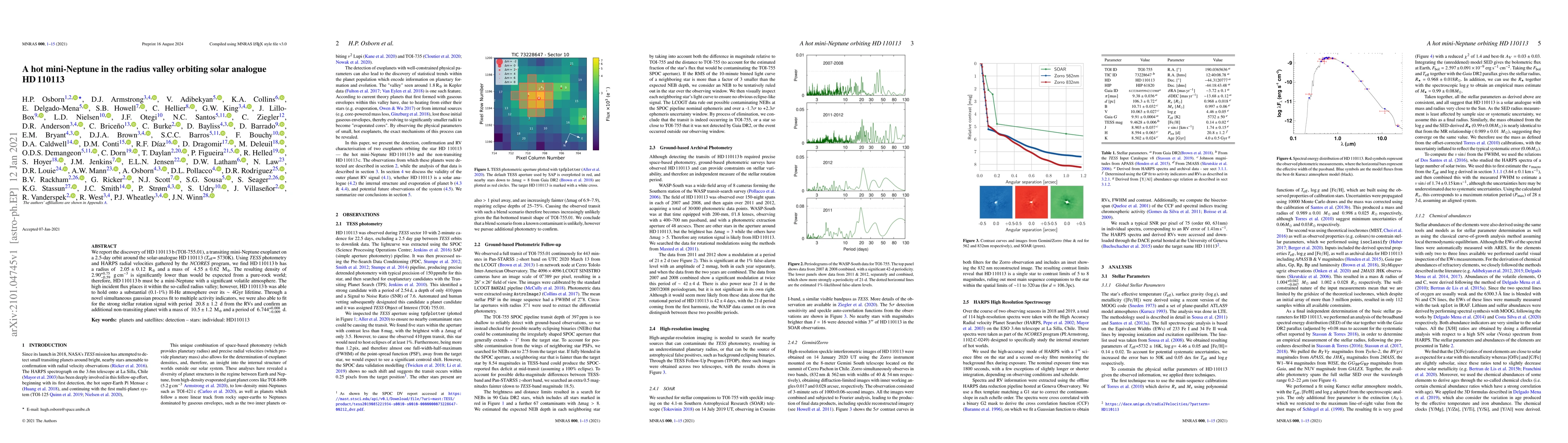 The discovery of HD 110113 b, a transiting mini-Neptune with a radius of $2.05 R_\oplus$ and a mass of $4.55 M_\oplus$, reveals a significant volatile atmosphere, placing it in the radius valley despite its solar-analogue host. An additional non-transiting planet with a mass of $10.5 M_\oplus$ was also detected.
