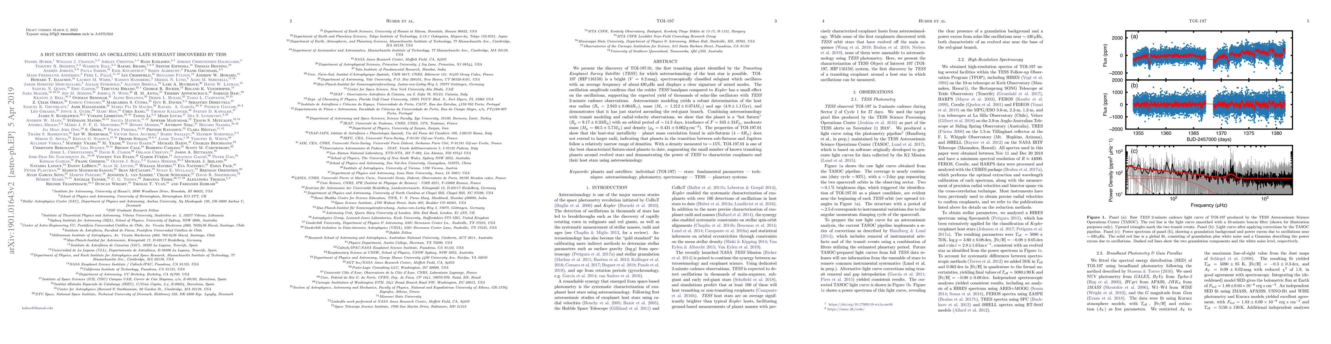 The paper reports the discovery of TOI-197.01, a hot Saturn transiting a late subgiant star observed by TESS. Asteroseismology of the star reveals its properties, confirming the effectiveness of TESS in detecting solar-like oscillations.