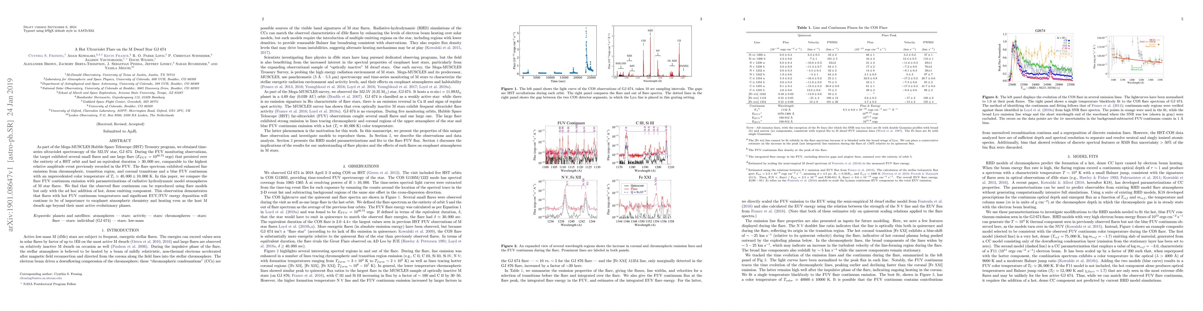This study observed a large ultraviolet flare on the M dwarf star GJ 674, revealing a hot continuum with an unprecedented color temperature of ~40,000 K. The flare's spectrum suggests the presence of a hot, dense emitting component, highlighting its significance for exoplanet atmospheric chemistry and heating.