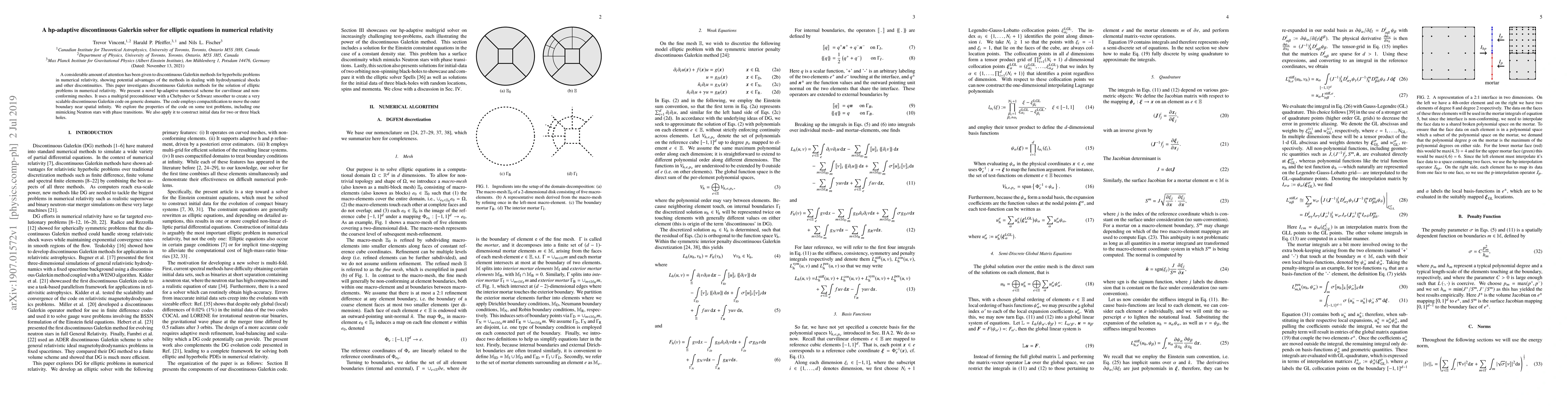 A considerable amount of attention has been given to discontinuous Galerkin methods for hyperbolic problems in numerical relativity, showing potential advantages of the methods in dealing with hydrodynamical shocks and other discontinuities. This paper investigates discontinuous Galerkin methods for the solution of elliptic problems in numerical relativity. We present a novel hp-adaptive numerical scheme for curvilinear and non-conforming meshes. It uses a multigrid preconditioner with a Chebyshev or Schwarz smoother to create a very scalable discontinuous Galerkin code on generic domains. The code employs compactification to move the outer boundary near spatial infinity. We explore the properties of the code on some test problems, including one mimicking Neutron stars with phase transitions. We also apply it to construct initial data for two or three black holes.
