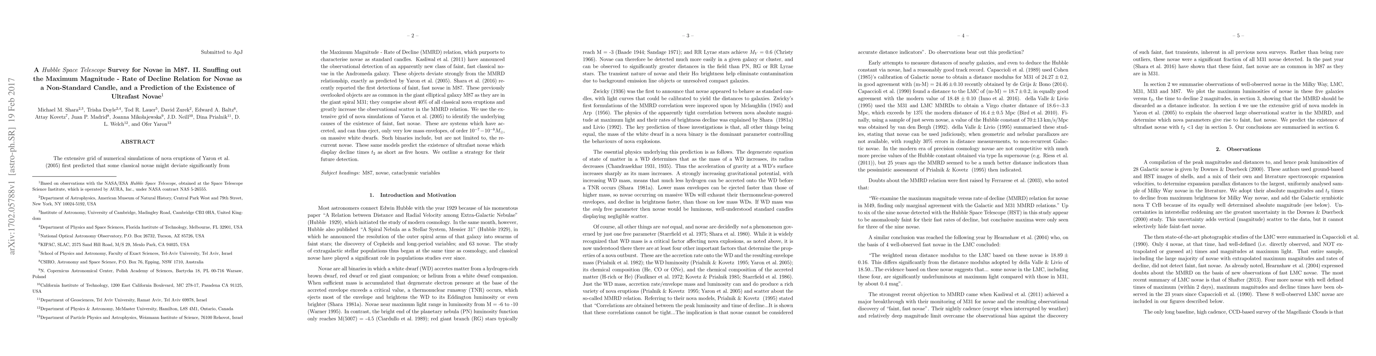 This paper reports on Hubble Space Telescope observations of novae in M87, revealing that faint, fast novae significantly deviate from the MMRD relation, challenging their use as standard candles. The study predicts the existence of ultrafast novae with extremely short decline times, suggesting a strategy for their future detection.