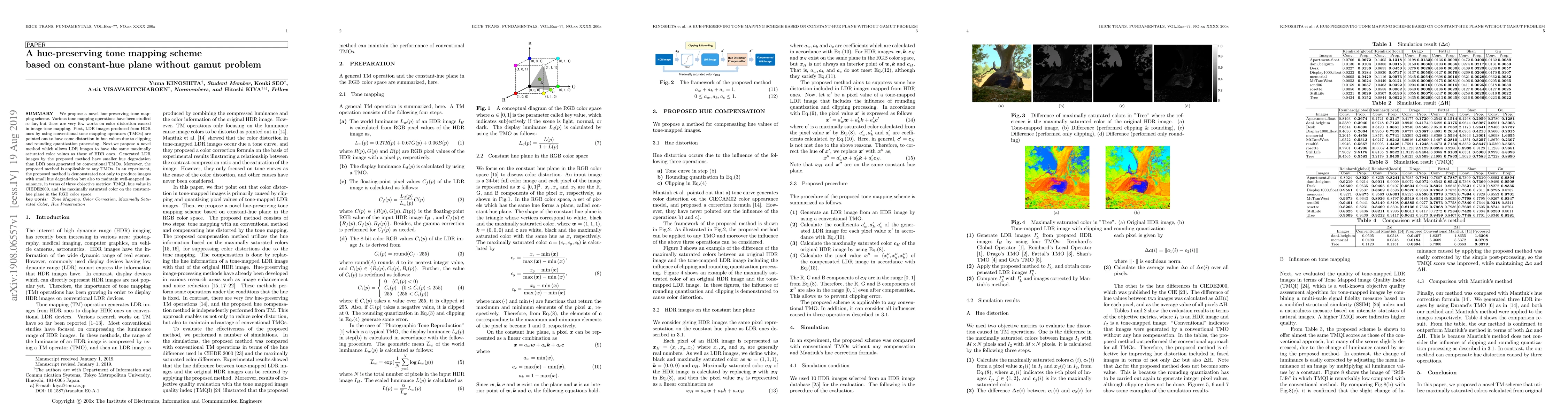 This paper proposes a new hue-preserving tone mapping scheme that minimizes color distortion in images converted from high dynamic range (HDR) to low dynamic range (LDR). The method maintains maximally saturated colors and reduces hue degradation compared to conventional tone mapping operators, validated through objective metrics.