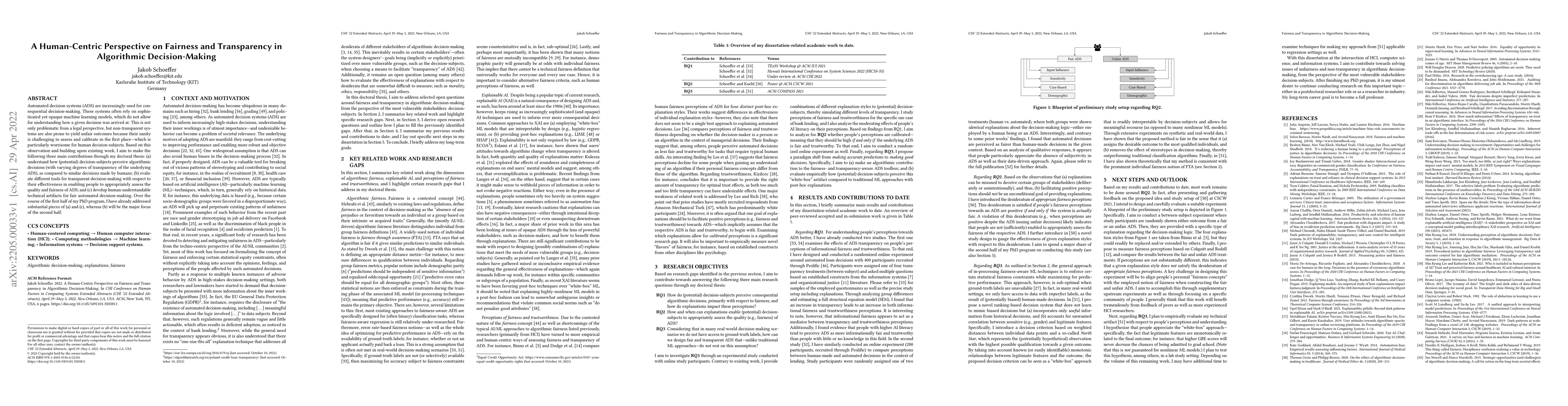 This paper explores the human perception of fairness and transparency in automated decision systems (ADS), emphasizing the importance of understanding how individuals view algorithmic versus human decisions. The research aims to evaluate tools for transparent decision-making and develop human-understandable technical artifacts to ensure fair outcomes, with initial progress made in understanding human perceptions and technical artifact development.