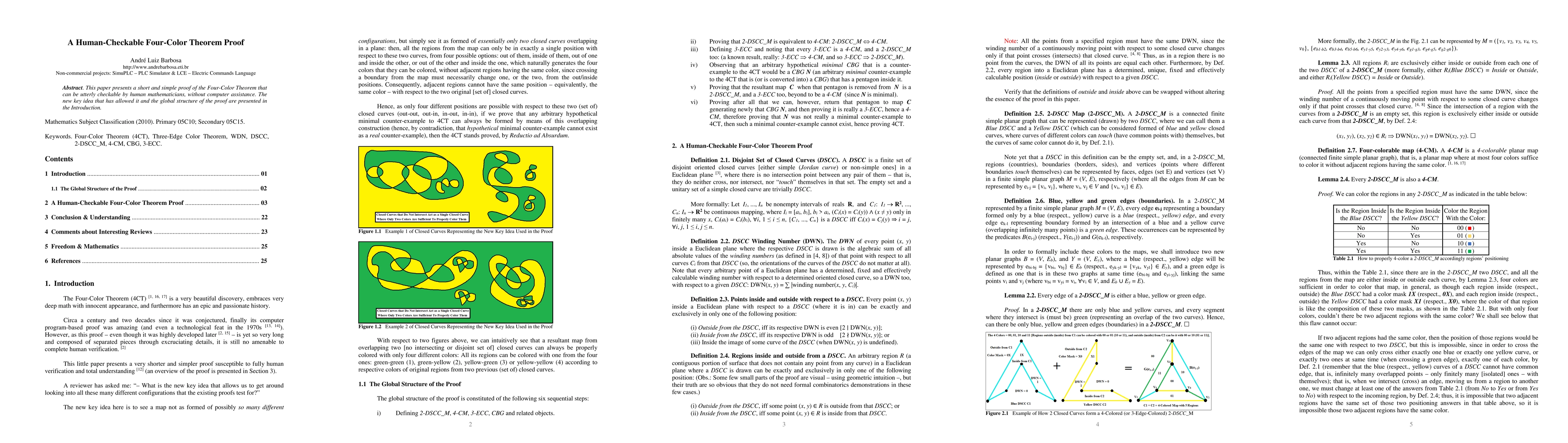This paper presents a short and simple proof of the Four-Color Theorem that can be utterly checkable by human mathematicians, without computer assistance. The new key idea that has allowed it and the global structure of the proof are presented in the Introduction.