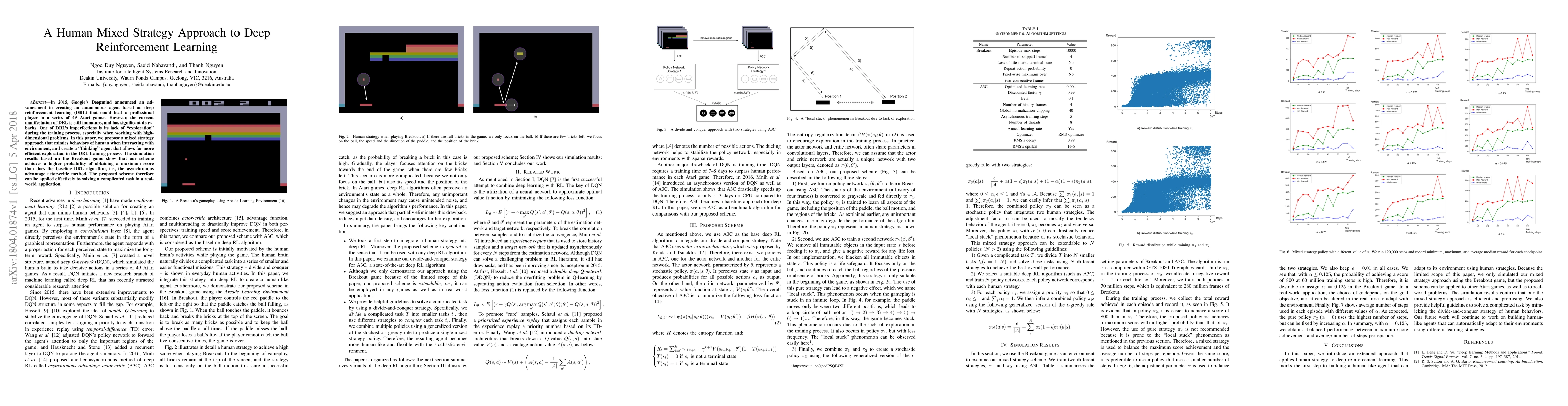 In 2015, Google's DeepMind announced an advancement in creating an autonomous agent based on deep reinforcement learning (DRL) that could beat a professional player in a series of 49 Atari games. However, the current manifestation of DRL is still immature, and has significant drawbacks. One of DRL's imperfections is its lack of "exploration" during the training process, especially when working with high-dimensional problems. In this paper, we propose a mixed strategy approach that mimics behaviors of human when interacting with environment, and create a "thinking" agent that allows for more efficient exploration in the DRL training process. The simulation results based on the Breakout game show that our scheme achieves a higher probability of obtaining a maximum score than does the baseline DRL algorithm, i.e., the asynchronous advantage actor-critic method. The proposed scheme therefore can be applied effectively to solving a complicated task in a real-world application.