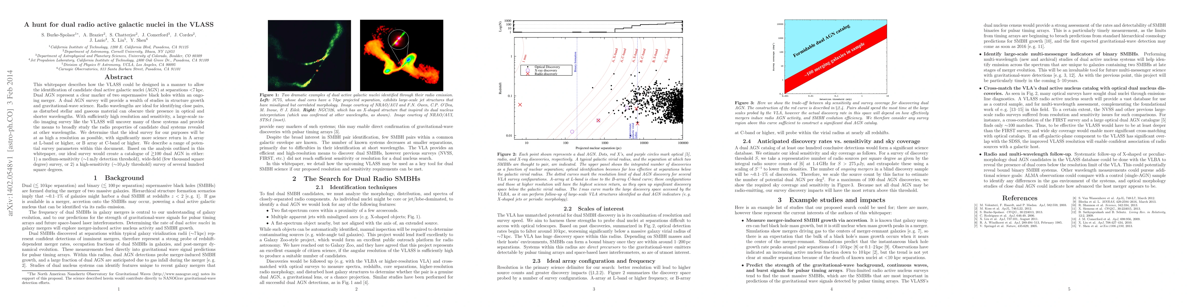 This paper explores the potential of the VLASS radio survey to identify dual active galactic nuclei (AGN) at separations <7 kpc, marking ongoing supermassive black hole mergers. It proposes high-resolution, high-sensitivity surveys at L-band or higher to uncover these systems and study their radio properties.