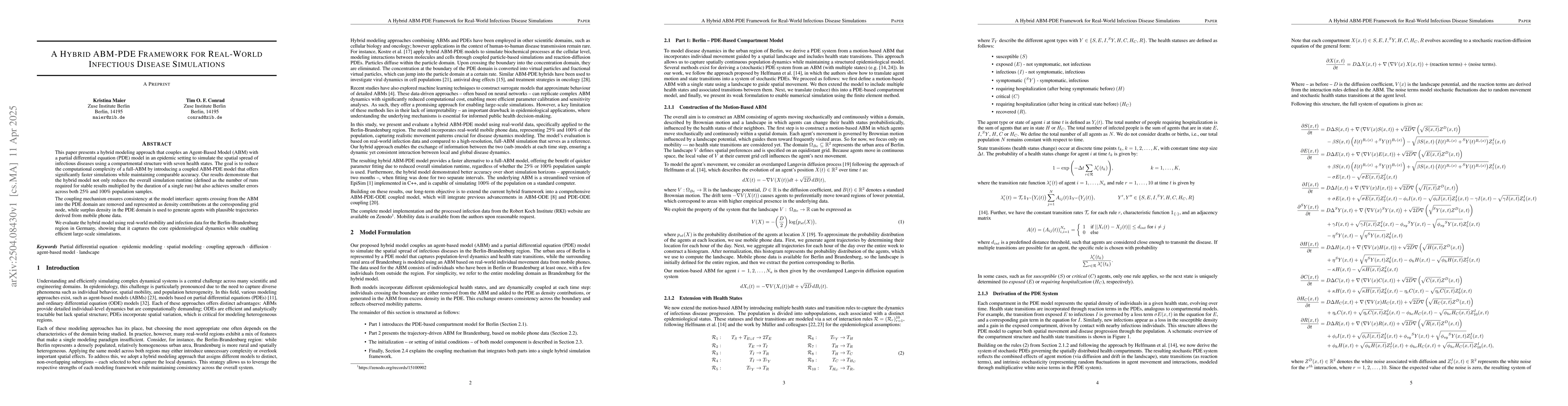 This work differs from existing research by combining ABMs with PDEs to create a computationally efficient yet spatially resolved simulation framework, capturing key epidemiological dynamics like commuting-driven transmission between Berlin and Brandenburg.